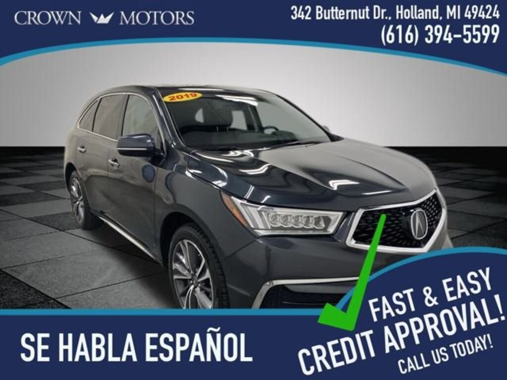 Gunmetal Metallic 2019 Acura MDX 3.5L Technology Package SH-AWD AWD 9-Speed Automatic 3.5L V6 SOHC i-VTEC 24V ** LOW MILES**, **LEATHER**, **ACCIDENT FREE**, **LOCAL TRADE IN**, AWD, 10 Speakers, 3rd row seats: bench, 4-Wheel Disc Brakes, 4.33 Axle Ratio, ABS brakes, Adaptive suspension, Air Conditioning, Alloy wheels, AM/FM radio: SiriusXM, Anti-whiplash front head restraints, Apple CarPlay/Android Auto, Audio memory, Auto High-beam Headlights, Auto tilt-away steering wheel, Auto-dimming Rear-View mirror, Automatic temperature control, Brake assist, Bumpers: body-color, CD player, Compass, Delay-off headlights, Driver door bin, Driver vanity mirror, Dual front impact airbags, Dual front side impact airbags, Electronic Stability Control, Emergency communication system, Exterior Parking Camera Rear, Four wheel independent suspension, Front anti-roll bar, Front Bucket Seats, Front Center Armrest, Front dual zone A/C, Front reading lights, Garage door transmitter: HomeLink, Genuine wood console insert, Genuine wood dashboard insert, Genuine wood door panel insert, Heated door mirrors, Heated front seats, Heated Front Sport Seats, HVAC memory, Illuminated entry, Knee airbag, Lane departure: Lane Keeping Assist System (LKAS) active, Leather steering wheel, Low tire pressure warning, Memory seat, Navigation System, Occupant sensing airbag, Outside temperature display, Overhead airbag, Overhead console, Panic alarm, Passenger door bin, Passenger vanity mirror, Perforated Premium Leather w/Contrast Stitching, Power door mirrors, Power driver seat, Power Liftgate, Power moonroof, Power passenger seat, Power steering, Power windows, Premium audio system: Acura/ELS Surround, Radio data system, Radio: Acura/ELS Studio Premium Audio System, Rain sensing wipers, Rear air conditioning, Rear anti-roll bar, Rear reading lights, Rear seat center armrest, Rear window defroster, Rear window wiper, Remote keyless entry, Security system, Speed control, Speed-sensing steering, Speed-Sensitive Wipers, Split folding rear seat, Spoiler, Steering wheel memory, Steering wheel mounted audio controls, Tachometer, Telescoping steering wheel, Tilt steering wheel, Traction control, Trip computer, Turn signal indicator mirrors, Variably intermittent wipers, Wheels: 20" x 8" Shark Gray Twisted 10-Spoke, AWD.