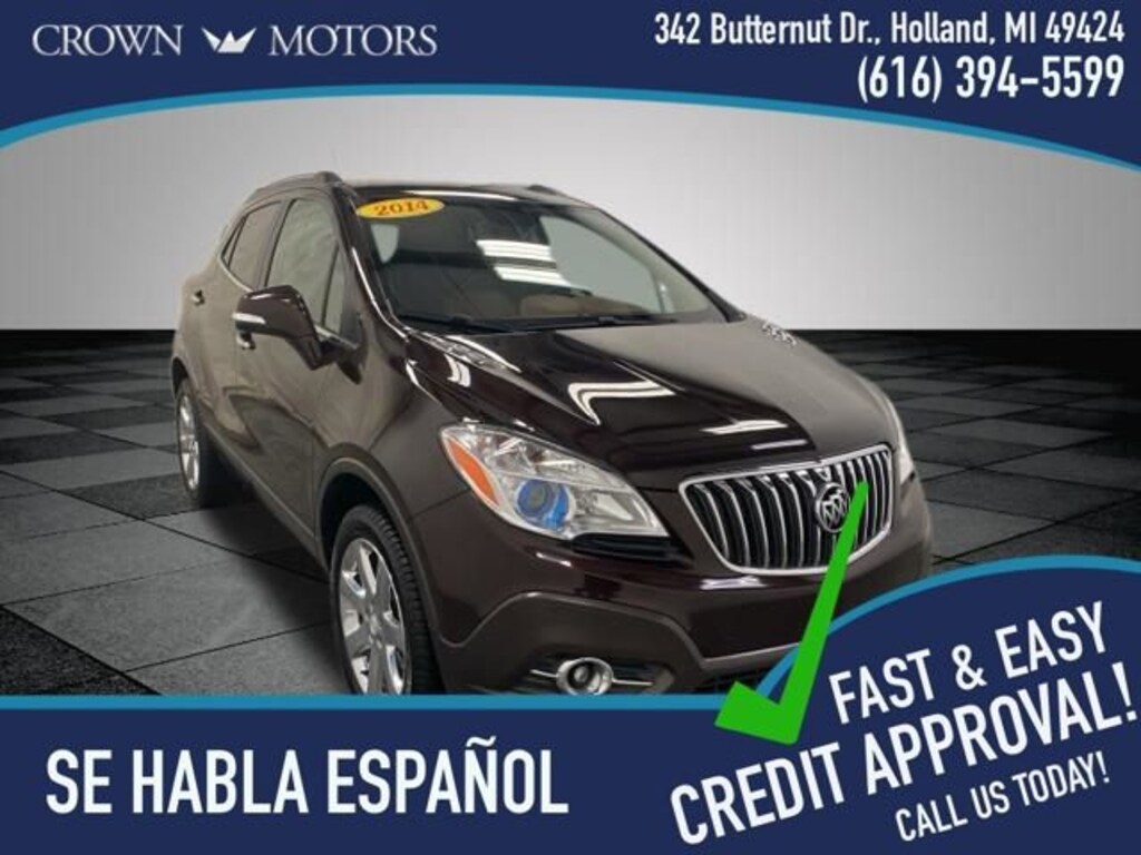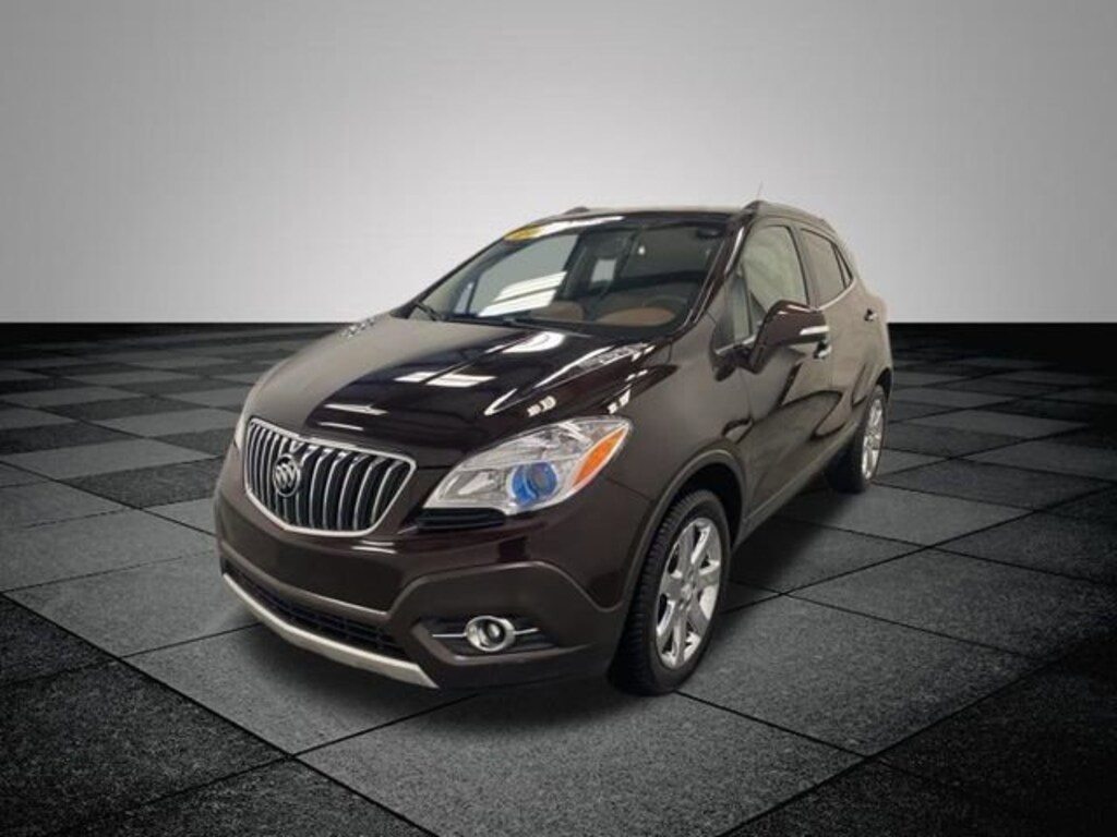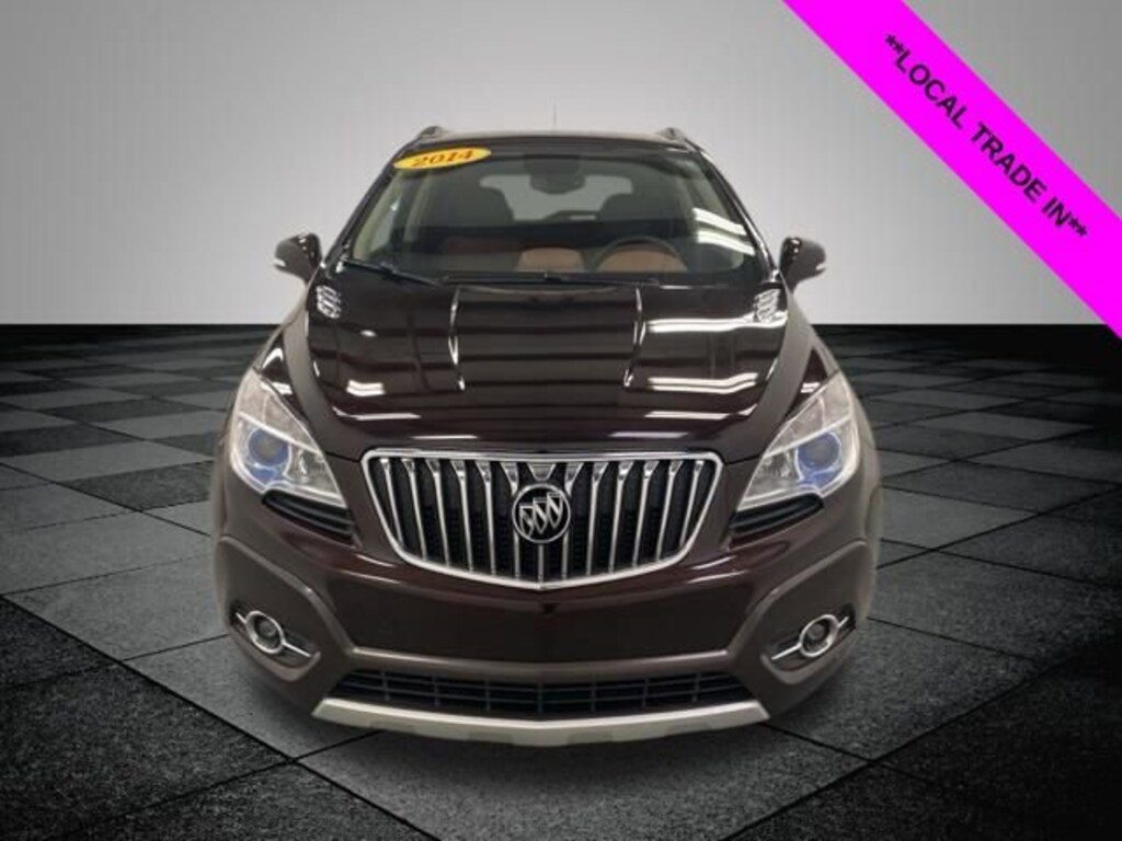 CARFAX One-Owner. Deep Espresso Brown Metallic 2014 Buick Encore Leather AWD 6-Speed Automatic ECOTEC 1.4L I4 SMPI DOHC Turbocharged VVT **LOCAL TRADE IN**, AWD, 120-Volt Power Outlet, 3.53 Final Drive Ratio, 4-Wheel Disc Brakes, 6 Speakers, ABS brakes, Air Conditioning, Alloy wheels, AM/FM radio: SiriusXM, Auto-Dimming Inside Rear-View Mirror, Auto-dimming Rear-View mirror, Automatic temperature control, Brake assist, Bumpers: body-color, CD player, Compass, Delay-off headlights, Driver door bin, Driver vanity mirror, Driver's Seat Mounted Armrest, Dual front impact airbags, Dual front side impact airbags, Dual-Zone Automatic Climate Control, Electronic Stability Control, Emergency communication system: OnStar Directions & Connections, Exterior Parking Camera Rear, Front anti-roll bar, Front Bucket Seats, Front dual zone A/C, Front Fog Lamps, Front fog lights, Front reading lights, Front wheel independent suspension, Fully automatic headlights, Heated door mirrors, Heated Driver & Front Passenger Seats, Heated front seats, Heated steering wheel, Illuminated entry, Knee airbag, Leather steering wheel, Leather-Appointed Seat Trim, Low tire pressure warning, Memory seat, Occupant sensing airbag, Outside temperature display, Overhead airbag, Panic alarm, Passenger door bin, Passenger vanity mirror, Power door mirrors, Power driver seat, Power passenger seat, Power steering, Power windows, Premium audio system: IntelliLink, Radio data system, Radio: AM/FM Audio System w/MP3 CD Player, Rear seat center armrest, Rear side impact airbag, Rear window defroster, Rear window wiper, Remote keyless entry, Remote Vehicle Starter System, Ride & Handling Suspension, Roof rack: rails only, Security system, SiriusXM Satellite Radio, Speed control, Speed-sensing steering, Split folding rear seat, Spoiler, Steering wheel mounted audio controls, Tachometer, Telescoping steering wheel, Tilt steering wheel, Traction control, Trip computer, Turn signal indicator mirrors, Variably intermittent wipers, Wheels: 18 Painted Cast Aluminum, AWD.