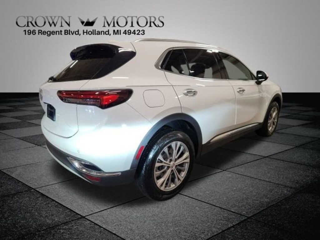 CARFAX One-Owner. Clean CARFAX. Certified. Summit White 2023 Buick Envision Preferred AWD 9-Speed Automatic 2.0L Turbocharged **ONE OWNER**, **ACCIDENT FREE**, Buick Certified Pre-Owned Certified, AWD, 3.47 Final Drive Axle Ratio, 4-Wheel Disc Brakes, 6-Speaker Audio System Feature, 7 Speakers, 7-Speaker Audio System Feature w/Amplifier, 8-Way Power Driver Seat Adjuster, ABS brakes, Air Conditioning, Alloy wheels, AM/FM radio: SiriusXM, Apple CarPlay/Android Auto, Auto High-beam Headlights, Auto-dimming door mirrors, Auto-dimming Rear-View mirror, Automatic Emergency Braking, Automatic temperature control, Brake assist, Bumpers: body-color, Cloth w/Leatherette Seat Trim, Compass, Delay-off headlights, Driver door bin, Driver vanity mirror, Dual front impact airbags, Dual front side impact airbags, Electronic Stability Control, Emergency communication system: OnStar and Buick connected services capable, Envision Driver Confidence, Following Distance Indicator, Forward Collision Alert, Four wheel independent suspension, Front anti-roll bar, Front Bin Center Console USB Ports, Front Bucket Seats, Front Center Armrest, Front dual zone A/C, Front Passenger 6-Way Manual Seat Adjuster, Front Pedestrian Braking, Front reading lights, Fully automatic headlights, Heated door mirrors, Heated front seats, Heated steering wheel, Illuminated entry, IntelliBeam Headlamp Control w/Auto High Beam, Knee airbag, Lane Change Alert w/Side Blind Zone Alert, Lane Keep Assist w/Lane Departure Warning, Low tire pressure warning, Occupant sensing airbag, Outside temperature display, Overhead airbag, Overhead console, Panic alarm, Passenger door bin, Passenger vanity mirror, Power door mirrors, Power driver seat, Power Liftgate, Power steering, Power windows, Preferred Equipment Group 1SC, Premium audio system: Buick Infotainment System, Radio data system, Radio: Buick Infotainment System AM/FM Stereo, Rear anti-roll bar, Rear Cross Traffic Alert, Rear reading lights, Rear seat center armrest, Rear window defroster, Rear window wiper, Remote keyless entry, Security system, SiriusXM Radio, Speed control, Split folding rear seat, Spoiler, Steering wheel mounted audio controls, Telescoping steering wheel, Tilt steering wheel, Traction control, Trip computer, USB Charging-Only Ports, Variably intermittent wipers, Wheels: 18" Aluminum w/Light Charcoal Met Finish, Wireless Apple CarPlay/Wireless Android Auto, AWD.