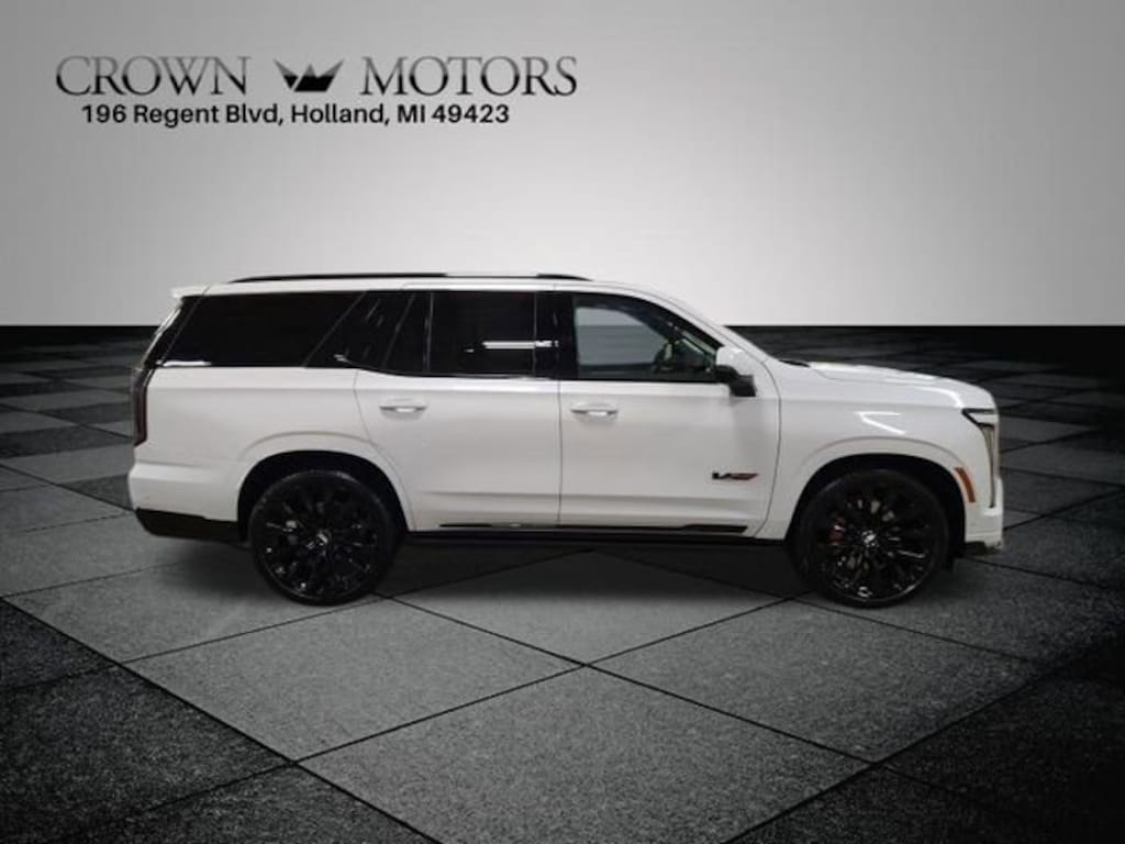 CARFAX One-Owner. Clean CARFAX. Vibrant White 2026 Cadillac Escalade V-Series AWD 10-Speed Automatic with Overdrive 6.2L V8 Supercharged **ONE OWNER**, ** LOW MILES**, **ACCIDENT FREE**, **LOCAL TRADE IN**, AWD, Sheer Gray With Jet Black Accents Leather, 24" Black Alloy Wheels, Black Illuminated Cadillac Emblem, Gloss Black Escalade Nameplate, Onyx Package, 2-Presets Memory For Driver Seat Adjuster, 2nd Row Floor Console with Stowable Tray Tables, 2nd Row Portable Device Dual Wireless Charging, 3.23 Axle Ratio, 3rd row seats: split-bench, 4-Way Power Bolster Second Row Seat Adjuster, 4-Way Power Driver Lumbar Seat Adjuster, 4-Way Power Front Passenger Lumbar Seat Adjuster, 4-Wheel Disc Brakes, 6-Way Power Second Row Seat Adjuster, 8-Way Power Driver Seat Adjuster, 8-Way Power Front Passenger Seat Adjuster, ABS brakes, Active Noise Cancellation, Adaptive suspension, Air Conditioning, Air Ride Adaptive Suspension, AKG Studio Reference 38-Speaker Audio System, AKG Studio Reference 42-Speaker Audio System, Alloy wheels, AM/FM radio: SiriusXM with 360L, Apple CarPlay/Android Auto, Audio memory, Auto High-beam Headlights, Auto tilt-away steering wheel, Auto-dimming door mirrors, Auto-dimming Rear-View mirror, Automatic temperature control, Blind Zone Steering Assist with Trailering, Brake assist, Bumpers: body-color, Compass, Delay-off headlights, Door Lock and Latch Shields, Driver door bin, Driver Seat Power Bolster, Driver vanity mirror, Dual front impact airbags, Dual front side impact airbags, Dual Rear USB Ports (Charge-Only), Electronic Limited-Slip Differential, Electronic Stability Control, Emergency communication system: OnStar Services capable, Executive 2nd-Row Seating Package, Exterior Parking Camera Rear, Four wheel independent suspension, Front anti-roll bar, Front Bucket Seats, Front Center Armrest w/Storage, Front dual zone A/C, Front Passenger Seat Power Bolster, Front reading lights, Full Semi-Aniline Leather Seats with Mondrian Quilting, Fully automatic headlights, Garage door transmitter, Genuine wood console insert, Genuine wood dashboard insert, Genuine wood door panel insert, Glass Breakage Sensor, Headphones, Heads-Up Display, Heated and Ventilated Driver and Front Passenger Seats, Heated door mirrors, Heated Driver and Front Passenger Seats, Heated front seats, Heated rear seats, Heated steering wheel, Hitch Guidance with Hitch View, Illuminated entry, Illuminating Front and Rear Sill Plates, Integrated Trailer Brake Controller, Knee airbag, Lane Departure Warning System, Leather steering wheel, Low tire pressure warning, Magnetic Ride Control Suspension, Memory seat, Navigation System, Night Vision, Night vision lights, Occupant sensing airbag, Outside temperature display, Overhead airbag, Overhead console, Panic alarm, Passenger door bin, Passenger vanity mirror, Platinum Interior Trim, Power door mirrors, Power driver seat, Power Liftgate, Power Lumbar Massage Driver Seat, Power Lumbar Massage Front Passenger Seat, Power moonroof, Power Open/Close Doors, Power Panoramic Tilt-Sliding Sunroof, Power passenger seat, Power steering, Power windows, Power-Retractable Assist Steps, Radio data system, Radio: Infotainment Experience, Rain sensing wipers, Rear air conditioning, Rear anti-roll bar, Rear audio controls, Rear reading lights, Rear Seat Entertainment System, Rear window defroster, Rear window wiper, Reconfigurable Full-Color Head-Up Display, Remote keyless entry, Second Row Executive Seats, Second Row Power Massage Seat Adjuster, Second Row Ventilated Seats, Security system, SiriusXM with 360L Trial Subscription, Smart Trailer Integration Indicator, Soft Closing Front and Rear Doors, Speed control, Split folding rear seat, Spoiler, Steering wheel memory, Steering wheel mounted audio controls, Tachometer, Telescoping steering wheel, Theft-Deterrent Alarm System, Tilt steering wheel, Touring Package, Traction control, Trailering App, Trailering Assist Guidelines, Trip computer, Turn signal indicator mirr