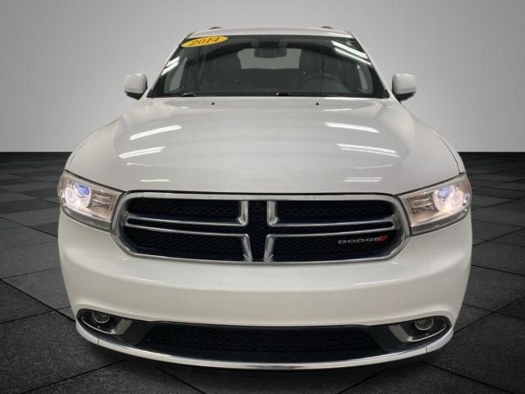 Bright White Clearcoat 2014 Dodge Durango Limited AWD 8-Speed Automatic 3.6L V6 Flex Fuel 24V VVT AWD, 1-Yr SIRIUSXM Travel Link Service, Nav & Power Liftgate Group, Power Liftgate, Quick Order Package 23E, Radio: Uconnect 8.4AN AM/FM/SXM/HD/BT/NAV, SIRIUSXM Traffic, SiriusXM Travel Link, 3.45 Rear Axle Ratio, 3rd row seats: split-bench, 4-Wheel Disc Brakes, 6 Speakers, ABS brakes, Air Conditioning, Alloy wheels, AM/FM radio: SiriusXM, Anti-whiplash front head restraints, Audio memory, Auto-dimming door mirrors, Auto-dimming Rear-View mirror, Automatic temperature control, Brake assist, Bumpers: body-color, Compass, Delay-off headlights, Driver door bin, Driver vanity mirror, Dual front impact airbags, Dual front side impact airbags, Electronic Stability Control, Emergency communication system: Uconnect Access, Exterior Parking Camera Rear, Four wheel independent suspension, Front anti-roll bar, Front Bucket Seats, Front Center Armrest w/Storage, Front dual zone A/C, Front fog lights, Front reading lights, Fully automatic headlights, Garage door transmitter, Heated door mirrors, Heated front seats, Heated rear seats, Heated steering wheel, Illuminated entry, Knee airbag, Leather Trimmed Bucket Seats, Low tire pressure warning, Manufacturer's Statement of Origin, Memory seat, Occupant sensing airbag, Outside temperature display, Overhead airbag, Overhead console, Panic alarm, Passenger door bin, Passenger vanity mirror, Power door mirrors, Power driver seat, Power passenger seat, Power steering, Power windows, Radio data system, Radio: Uconnect 8.4A AM/FM/SXM/BT, Rear air conditioning, Rear anti-roll bar, Rear Parking Sensors, Rear reading lights, Rear seat center armrest, Rear window defroster, Rear window wiper, Remote keyless entry, Roof rack, Security system, Speed control, Speed-Sensitive Wipers, Split folding rear seat, Spoiler, Steering wheel mounted audio controls, Tachometer, Telescoping steering wheel, Tilt steering wheel, Traction control, Trip computer, Turn signal indicator mirrors, Variably intermittent wipers, Wheels: 18 x 8.0 Polished Aluminum, AWD, 1-Yr SIRIUSXM Travel Link Service, Nav & Power Liftgate Group, Power Liftgate, Quick Order Package 23E, Radio: Uconnect 8.4AN AM/FM/SXM/HD/BT/NAV, SIRIUSXM Traffic, SiriusXM Travel Link.