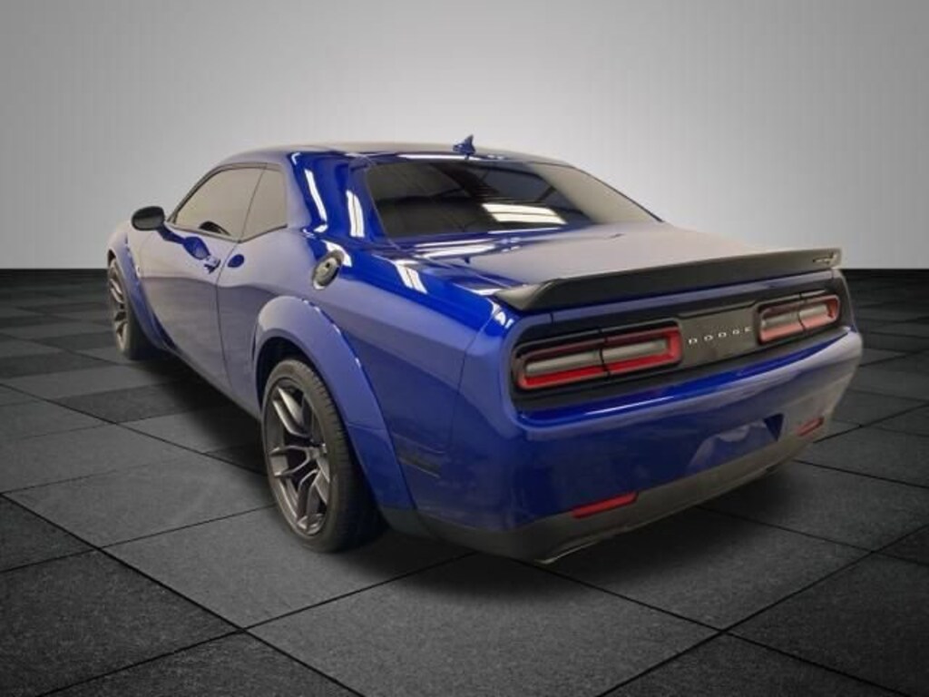 Beyond its raw power, this Challenger is also a sight to behold. The striking Widebody design, with its flared fenders and 20-inch Devil's Rim aluminum wheels, creates an aggressive, muscular stance. The bold Blue exterior paint and red brake calipers add to the vehicle's bold, confident appearance.