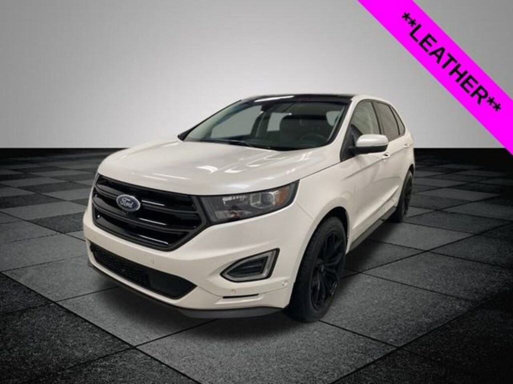 White Platinum 2018 Ford Edge Sport AWD 6-Speed Automatic 2.7L V6 EcoBoost ** LOW MILES**, **LEATHER**, **LOCAL TRADE IN**, AWD, 110V/150W AC Power Outlet, 12 Speakers, 3.16 Axle Ratio, 4-Wheel Disc Brakes, ABS brakes, Adaptive Cruise Control & Fwd Collision Warning, Air Conditioning, Alloy wheels, AM/FM radio: SiriusXM, AM/FM Stereo w/Single CD Player, Apple CarPlay/Android Auto, Auto-dimming Rear-View mirror, Automatic temperature control, BLIS Blind Spot Information System, Brake assist, Bumpers: body-color, CD player, Cold Weather Package, Compass, Cooled Front Seats, Delay-off headlights, Driver door bin, Driver vanity mirror, Dual front impact airbags, Dual front side impact airbags, Electronic Stability Control, Emergency communication system: SYNC 3 911 Assist, Enhanced Active Park Assist, Equipment Group 401A, Exterior Parking Camera Rear, Four wheel independent suspension, Front & Rear Floor Liners, Front 180 Degree Camera, Front anti-roll bar, Front Bucket Seats, Front Center Armrest w/Storage, Front dual zone A/C, Front reading lights, Fully automatic headlights, Garage door transmitter, Heated door mirrors, Heated front seats, Heated Rear-Seats, Heated Steering Wheel, HID Projector-Style Headlamps w/Auto High Beams, Illuminated entry, Knee airbag, Lane-Keeping System, Leather Shift Knob, Leather-Trimmed Heated Sport Bucket Seats, Low tire pressure warning, Memory seat, Occupant sensing airbag, Outside temperature display, Overhead airbag, Overhead console, Panic alarm, Panoramic Vista Roof, Passenger door bin, Passenger vanity mirror, Power door mirrors, Power driver seat, Power Liftgate, Power passenger seat, Power steering, Power windows, Premium audio system: Sony, Rain-Sensing Wipers, Rear anti-roll bar, Rear Parking Sensors, Rear reading lights, Rear seat center armrest, Rear window defroster, Rear window wiper, Remote keyless entry, Remote Start System, Security system, SiriusXM Radio, SiriusXM Traffic & Travel Link, Speed control, Speed-sensing steering, Speed-Sensitive Wipers, Split folding rear seat, Spoiler, Steering wheel memory, Steering wheel mounted audio controls, SYNC 3 Communications & Entertainment System, Tachometer, Telescoping steering wheel, Tilt steering wheel, Traction control, Trip computer, Turn signal indicator mirrors, Variably intermittent wipers, Voice-Activated Touchscreen Navigation System, Wheels: 20" Polished w/Magn Low Gloss Ptd Pockets, Wheels: 21" Premium Dark Tarnish Low Gloss, Windshield Wiper De-Icer, AWD.