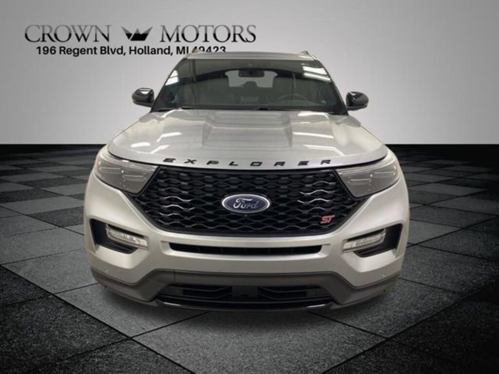 Silver Metallic 2020 Ford Explorer ST 4WD 10-Speed Automatic 3.0L EcoBoost V6 **ACCIDENT FREE**, **LOCAL TRADE IN**, 4WD, 10.1" LCD Capacitive Portrait Touchscreen, 12 Speakers, 2 Additional Speakers, 20" Machined Aluminum w/Painted Pockets Wheels, 2nd Row 35/30/35 Bench w/E-Z Entry & Armrest, 3.58 Non-Limited-Slip Rear Axle Ratio, 3rd row seats: bench, 4-Wheel Disc Brakes, ABS brakes, Air Conditioning, Alloy wheels, AM/FM radio: SiriusXM, Auto High-beam Headlights, Auto-dimming door mirrors, Auto-dimming Rear-View mirror, Automatic temperature control, Brake assist, Bumpers: body-color, Compass, Delay-off headlights, Driver door bin, Driver vanity mirror, Dual front impact airbags, Dual front side impact airbags, Electronic Stability Control, Emergency communication system: SYNC 3 911 Assist, Equipment Group 400A, Exterior Parking Camera Rear, FordPass Connect, Four wheel independent suspension, Front & Second Row Floor Liners, Front anti-roll bar, Front Bucket Seats, Front Center Armrest, Front dual zone A/C, Front fog lights, Front reading lights, Fully automatic headlights, Garage door transmitter: HomeLink, Heated door mirrors, Heated front seats, Heated rear seats, Heated steering wheel, Illuminated entry, Knee airbag, Leather Htd/Ventilated Sport Captain's Chairs, Leather steering wheel, Low tire pressure warning, Memory seat, Navigation System, Occupant sensing airbag, Outside temperature display, Overhead airbag, Overhead console, Panic alarm, Passenger door bin, Passenger vanity mirror, Performance Front & Rear Brakes, Power door mirrors, Power driver seat, Power Liftgate, Power passenger seat, Power steering, Power windows, Premium Technology Package, Radio data system, Radio: B&O Sound System by Bang & Olufsen, Rain sensing wipers, Rear air conditioning, Rear anti-roll bar, Rear reading lights, Rear window defroster, Rear window wiper, Remote keyless entry, Roof rack: rails only, Security system, Speed control, Speed-sensing steering, Speed-Sensitive Wipers, Split folding rear seat, Spoiler, Sport steering wheel, ST Street Pack, Steering wheel memory, Steering wheel mounted audio controls, SYNC 3 Communications & Entertainment System, SYNC 3/Apple CarPlay/Android Auto, Tachometer, Telescoping steering wheel, Tilt steering wheel, Traction control, Trip computer, Turn signal indicator mirrors, Twin Panel Moonroof, Variably intermittent wipers, Ventilated front seats, Voice-Activated Touchscreen Navigation System, Wheels: 21" Aluminum, 4WD.