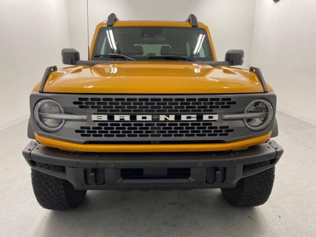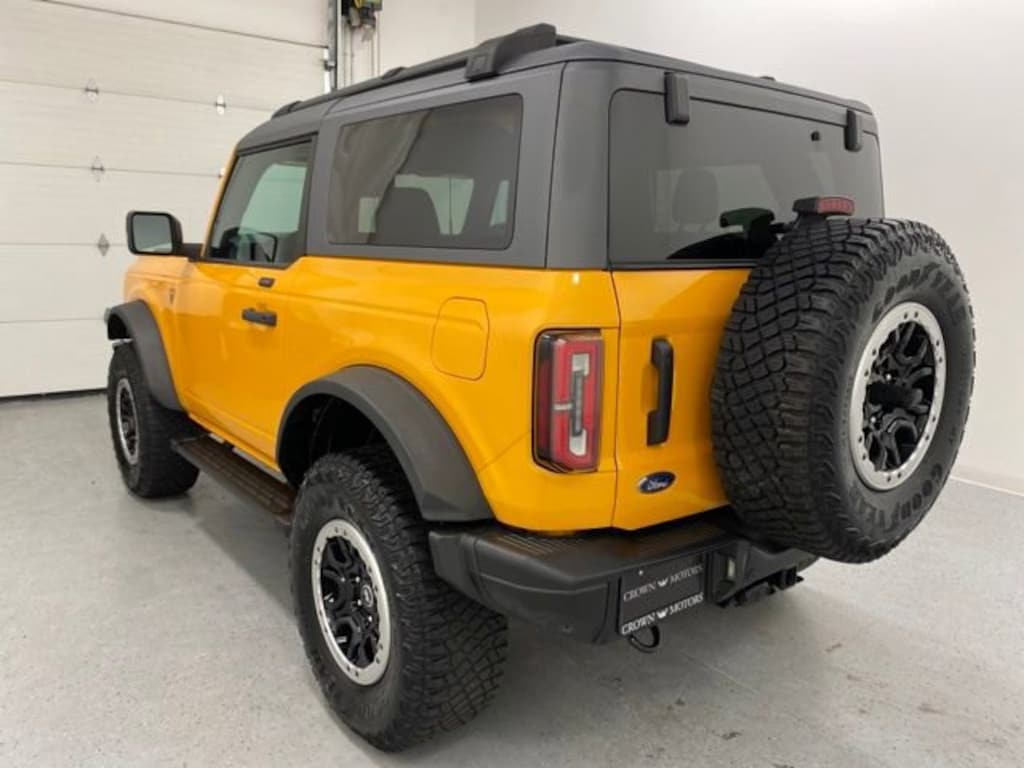 CARFAX One-Owner. Orange Metallic 2021 Ford Bronco Badlands 4WD 10-Speed Automatic 2.7L EcoBoost V6 **ONE OWNER**, **ACCIDENT FREE**, **360 VIEW BACK UP CAMERA**, **4WD**, **BLIND SPOT MONITOR**, **Dual Zone Automatic Climate Control**, **HEATED SEATS**, **LEATHER SEATS**, **LOCAL TRADE**, **REMOTE START**, **Remaining Factory Warranty**, 4WD, 12" LCD Capacitive Touchscreen w/Swipe Capability, 2 Smart Charging USB Ports In Dashboard, 2-Door Intelligent Access w/Lock/Unlock, 360-Degree Camera, 4-Wheel Disc Brakes, 4.7 Axle Ratio, 6 Speakers, ABS brakes, Adaptive Cruise Control, Additional Sound Deadening, Air Conditioning, Alloy wheels, AM/FM radio: SiriusXM with 360L, AM/FM Stereo, Ambient Footwell Lighting, Auto High-Beam Headlamps, Auto High-beam Headlights, Auto-Dimming Interior Rear-View Mirror, Black Roof Rails w/Crossbars, BLIS Blind Spot Information System, Brake assist, Compass, Connected Built-In Navigation, Convertible HardTop, Convertible roof lining, Delay-off headlights, Dr & Pass Illuminated Sliding Visor Vanity Mirrors, Driver door bin, Driver vanity mirror, Dual front impact airbags, Dual front side impact airbags, Dual-Zone Electronic Automatic Temperature Control, Emergency communication system: 911 Assist, Enhanced Voice Recognition, Equipment Group 334A Lux Package, Evasive Steering Assist, Exterior Parking Camera Rear, Forward Sensing System, Front anti-roll bar, Front Bucket Seats, Front Center Armrest, Front reading lights, Front Row Heated Seats, Front wheel independent suspension, Fully automatic headlights, Glass rear window, Hard Top Sound Deadening Headliner, Heated door mirrors, Heated Steering Wheel, High Clearance Fender Flares, High Clearance Suspension, Illuminated entry, Information on Demand Panel, Integrated roll-over protection, Keyless Entry Keypad, Lane-Keeping System, Leather Shift Knob, Low tire pressure warning, Marine Grade Vinyl Bucket Seats, Occupant sensing airbag, Outside temperature display, Overhead airbag, Overhead console, Panic alarm, Passenger door bin, Passenger vanity mirror, Position-Sensitive Bilstein Shock Absorbers, Power door mirrors, Power Outlet - Back Side of Center Floor Console, Power steering, Power windows, Pre-Collision Assist w/Automatic Emergency Braking, Radio data system, Radio: B&O Sound System by Bang & Olufsen, Rear window defroster, Rear window wiper, Rear-View Camera, Remote keyless entry, Reverse Sensing System, Sasquatch Package, Security system, Sideview Mirrors, SiriusXM Radio w/360L, Speed control, Split folding rear seat, Steering wheel mounted audio controls, SYNC 4, Tachometer, Telescoping steering wheel, Tilt steering wheel, Towing Capability, Traction control, Trip computer, Universal Garage Door Opener, Variably intermittent wipers, Voltmeter, Wheels: 17" Black High Gloss-Painted Aluminum, Wheels: 17" Machined Carbonized Aluminum, Wireless Charging Pad, **HEATED STEERING WHEEL**, **APPLE CAR PLAY/ANDROID AUTO CAPABLE**, **FREE CARFAX AT CROWNMOTORS.COM**, 4WD.