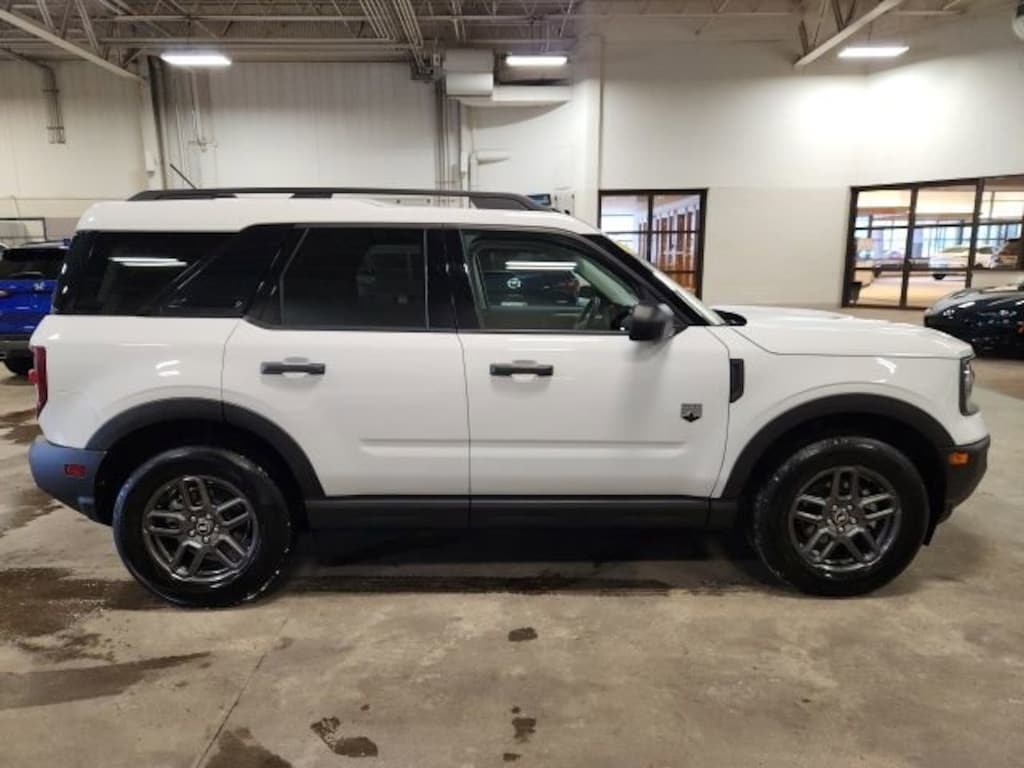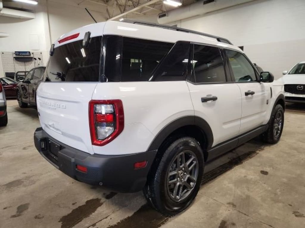 CARFAX One-Owner. Oxford White 2025 Ford Bronco Sport Big Bend 4WD 8-Speed Automatic 1.5L EcoBoost **ONE OWNER**, **ACCIDENT FREE**, 4WD, 4-Wheel Disc Brakes, 6 Speakers, ABS brakes, Air Conditioning, Alloy wheels, AM/FM radio: SiriusXM, AM/FM Stereo, Auto High-beam Headlights, Automatic temperature control, Brake assist, Cloth w/Easy-to-Clean Front Bucket Seats, Compass, Delay-off headlights, Driver door bin, Driver vanity mirror, Dual front impact airbags, Dual front side impact airbags, Electronic Stability Control, Emergency communication system: SYNC 4 911 Assist, Equipment Group 200A, Four wheel independent suspension, Front anti-roll bar, Front Bucket Seats, Front Center Armrest, Front License Plate Bracket, Front reading lights, Fully automatic headlights, Heated door mirrors, Illuminated entry, Knee airbag, Low tire pressure warning, Occupant sensing airbag, Outside temperature display, Overhead airbag, Overhead console, Panic alarm, Passenger door bin, Passenger vanity mirror, Power door mirrors, Power steering, Power windows, Radio data system, Rear anti-roll bar, Rear Parking Sensors, Rear reading lights, Rear seat center armrest, Rear window defroster, Rear window wiper, Remote keyless entry, Security system, SiriusXM, Speed control, Speed-sensing steering, Speed-Sensitive Wipers, Split folding rear seat, Steering wheel mounted audio controls, SYNC 4 w/Enhanced Voice Recognition, Tachometer, Telescoping steering wheel, Tilt steering wheel, Traction control, Trip computer, Variably intermittent wipers, Wheels: 17" Carbonized Gray-Painted Aluminum, 4WD.