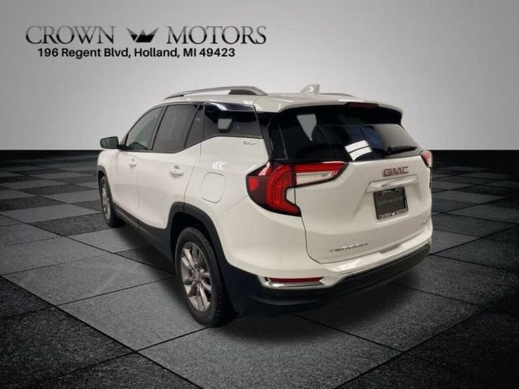 CARFAX One-Owner. Summit White 2022 GMC Terrain SLT AWD 9-Speed Automatic 1.5L DOHC **ONE OWNER**, AWD, 2 USB Data Ports, 2 USB Data Ports w/SD Card Reader, 3 Years of OnStar & Connected Services Plan, 3.47 Axle Ratio, 4-Wheel Disc Brakes, 6 Speakers, 6-Speaker Audio System Feature, 6-Way Power Front Passenger Seat, 8-Way Power Driver Seat Adjuster, ABS brakes, Adaptive Cruise Control, Air Conditioning, Alloy wheels, AM/FM radio: SiriusXM, Auto High-beam Headlights, Auto-dimming Rear-View mirror, Automatic temperature control, Bluetooth® For Phone, Brake assist, Bumpers: body-color, Compass, Delay-off headlights, Driver & Front Passenger Heated Seats, Driver door bin, Driver vanity mirror, Dual front impact airbags, Dual front side impact airbags, Electronic Stability Control, Emergency communication system: OnStar Guidance, Four wheel independent suspension, Front anti-roll bar, Front Bucket Seats, Front Center Armrest, Front dual zone A/C, Front fog lights, Front Passenger 2-Way Power Lumbar, Front reading lights, Fully automatic headlights, Garage door transmitter, GMC Pro Safety Plus, Heated door mirrors, Heated front seats, Heated steering wheel, Illuminated entry, Infotainment Package II, Lane Change Alert w/Side Blind Zone Alert, Lane Departure Warning System, License Plate Front Mounting Package, Low tire pressure warning, Memory seat, Not Equipped w/Lane Change & Rear Cross Traffic Alerts, Occupant sensing airbag, Outside temperature display, Overhead airbag, Overhead console, Panic alarm, Passenger door bin, Passenger vanity mirror, Perforated Leather-Appointed Seat Trim, Power door mirrors, Power Driver Lumbar Control, Power driver seat, Power Liftgate, Power passenger seat, Power steering, Power windows, Preferred Equipment Group 4SA, Premium 7-Speaker Bose Sound System w/Amplifier, Radio data system, Radio: GMC Infotainment Audio System w/8" Display, Radio: GMC Infotainment Audio System w/Navigation, Rear anti-roll bar, Rear Cross-Traffic Alert, Rear Park Assist, Rear seat center armrest, Rear window defroster, Rear window wiper, Remote keyless entry, Roof rack: rails only, Safety Alert Seat, Security system, SiriusXM Radio, Skyscape Power Sunroof w/Power Sunscreen, Speed control, Speed-sensing steering, Split folding rear seat, Spoiler, Steering wheel mounted audio controls, Tachometer, Telescoping steering wheel, Tilt steering wheel, Traction control, Trip computer, Turn signal indicator mirrors, Variably intermittent wipers, Wheels: 18" x 7" Silver Painted Aluminum, Wireless Apple CarPlay/Wireless Android Auto, AWD.