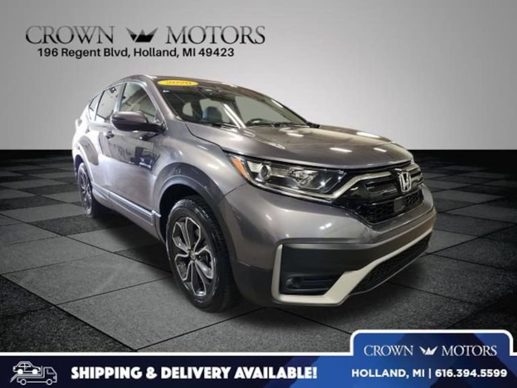 Gray 2020 Honda CR-V EX-L AWD CVT 1.5L I4 DOHC 16V **ONE OWNER**, **LEATHER**, **ACCIDENT FREE**, **LOCAL TRADE IN**, AWD, 18" Alloy Wheels, 4-Wheel Disc Brakes, 5.64 Axle Ratio, 8 Speakers, ABS brakes, Adaptive Cruise Control: Adaptive Cruise Control (ACC) with Low-Speed Follow, Air Conditioning, Alloy wheels, AM/FM radio: SiriusXM, Apple CarPlay/Android Auto, Auto High-beam Headlights, Auto-dimming Rear-View mirror, Automatic temperature control, Blind Spot Information (BSI) System warning, Brake assist, Bumpers: body-color, Compass, Delay-off headlights, Driver door bin, Driver vanity mirror, Dual front impact airbags, Dual front side impact airbags, Electronic Stability Control, Exterior Parking Camera Rear, Forward collision: Collision Mitigation Braking System (CMBS) + FCW mitigation, Four wheel independent suspension, Front anti-roll bar, Front Bucket Seats, Front Center Armrest, Front dual zone A/C, Front fog lights, Front reading lights, Garage door transmitter: HomeLink, Heated door mirrors, Heated Front Bucket Seats, Heated front seats, Illuminated entry, Leather Seat Trim, Leather Shift Knob, Low tire pressure warning, Memory seat, Occupant sensing airbag, Outside temperature display, Overhead airbag, Overhead console, Panic alarm, Passenger door bin, Passenger vanity mirror, Power door mirrors, Power driver seat, Power Liftgate, Power moonroof, Power passenger seat, Power steering, Power windows, Radio data system, Radio: 180-Watt AM/FM/HD/SiriusXM Audio System, Rear anti-roll bar, Rear seat center armrest, Rear window defroster, Rear window wiper, Remote keyless entry, Security system, Speed control, Speed-sensing steering, Speed-Sensitive Wipers, Split folding rear seat, Spoiler, Steering wheel mounted audio controls, Tachometer, Telescoping steering wheel, Tilt steering wheel, Traction control, Trip computer, Turn signal indicator mirrors, Variably intermittent wipers, AWD.