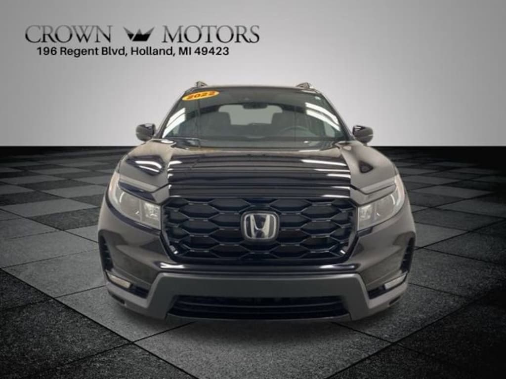CARFAX One-Owner. Clean CARFAX. Crystal Black Pearl 2022 Honda Passport Elite AWD 9-Speed Automatic 3.5L V6 24V SOHC i-VTEC **ONE OWNER**, **LEATHER**, **ACCIDENT FREE**, AWD, 10 Speakers, 4-Wheel Disc Brakes, 4.334 Axle Ratio, A/V remote: CabinControl, ABS brakes, Air Conditioning, Alloy wheels, AM/FM radio: SiriusXM, Apple CarPlay/Android Auto, Auto High-beam Headlights, Auto-dimming door mirrors, Auto-dimming Rear-View mirror, Automatic temperature control, Blind Spot Information (BSI) System warning, Brake assist, Bumpers: body-color, Compass, Delay-off headlights, Driver door bin, Driver vanity mirror, Driver's Seat Mounted Armrest, Dual front impact airbags, Dual front side impact airbags, Electronic Stability Control, Emergency communication system: HondaLink, Exterior Parking Camera Rear, Forward collision: Collision Mitigation Braking System (CMBS) + FCW mitigation, Four wheel independent suspension, Front anti-roll bar, Front Bucket Seats, Front Center Armrest, Front dual zone A/C, Front fog lights, Front reading lights, Fully automatic headlights, Garage door transmitter: HomeLink, Heated & Ventilated Front Bucket Seats, Heated door mirrors, Heated front seats, Heated rear seats, Heated steering wheel, Illuminated entry, Lane departure: Lane Keeping Assist System (LKAS) active, Low tire pressure warning, Memory seat, Navigation system: Honda Satellite-Linked Navigation System, Occupant sensing airbag, Outside temperature display, Overhead airbag, Overhead console, Panic alarm, Passenger door bin, Passenger seat mounted armrest, Passenger vanity mirror, Perforated Leather-Trimmed Seats, Power door mirrors, Power driver seat, Power Liftgate, Power moonroof, Power passenger seat, Power steering, Power windows, Radio data system, Radio: 540-Watt Premium Audio System w/10 Speakers, Rain sensing wipers, Rear air conditioning, Rear anti-roll bar, Rear reading lights, Rear seat center armrest, Rear window defroster, Rear window wiper, Remote keyless entry, Roof rack: rails only, Security system, Speed control, Speed-sensing steering, Split folding rear seat, Spoiler, Steering wheel mounted audio controls, Tachometer, Telescoping steering wheel, Tilt steering wheel, Traction control, Trip computer, Turn signal indicator mirrors, Variably intermittent wipers, Ventilated front seats, Wheels: 20" Machined-Finish Alloy, AWD.