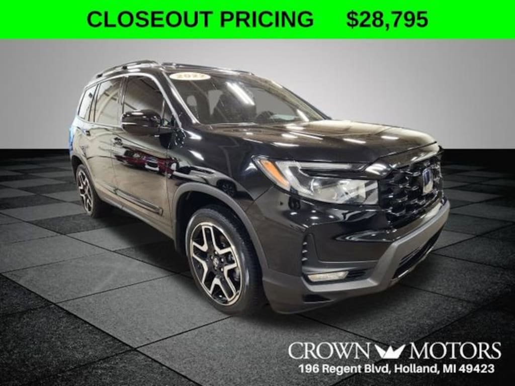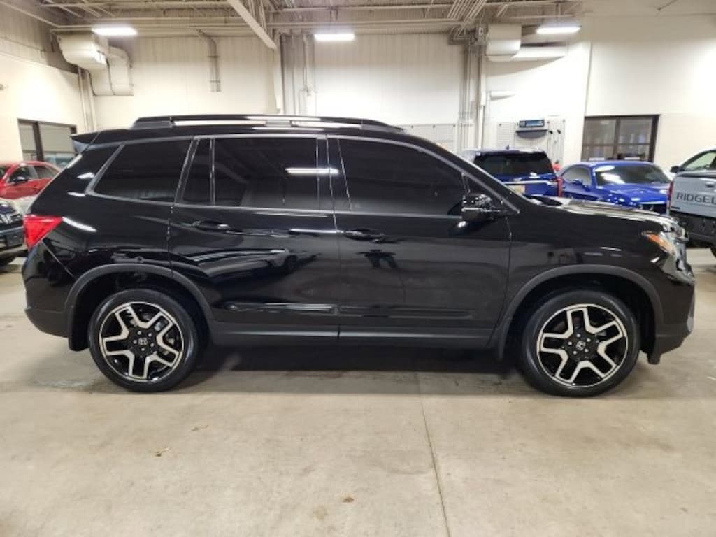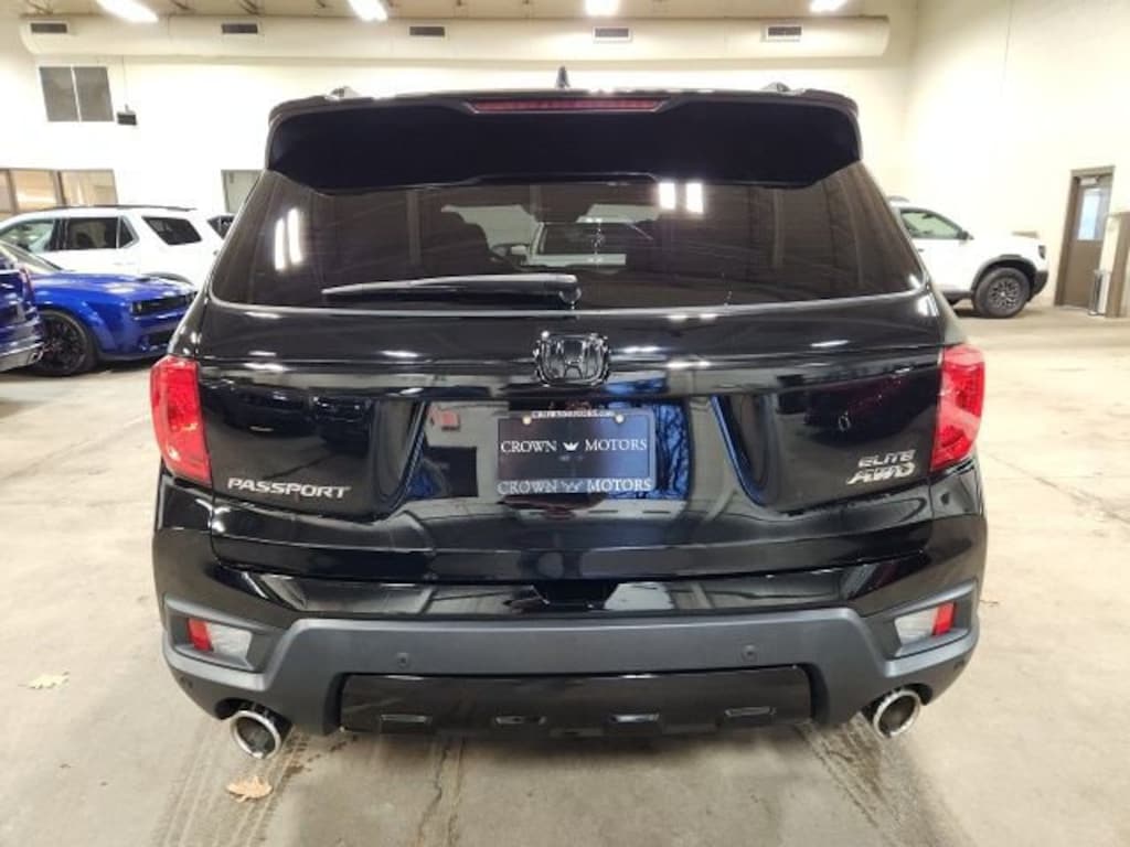 CARFAX One-Owner. Clean CARFAX. Crystal Black Pearl 2022 Honda Passport Elite AWD 9-Speed Automatic 3.5L V6 24V SOHC i-VTEC **ONE OWNER**, **ACCIDENT FREE**, AWD, 10 Speakers, 4-Wheel Disc Brakes, 4.334 Axle Ratio, A/V remote: CabinControl, ABS brakes, Air Conditioning, Alloy wheels, AM/FM radio: SiriusXM, Apple CarPlay/Android Auto, Auto High-beam Headlights, Auto-dimming door mirrors, Auto-dimming Rear-View mirror, Automatic temperature control, Blind Spot Information (BSI) System warning, Brake assist, Bumpers: body-color, Compass, Delay-off headlights, Driver door bin, Driver vanity mirror, Driver's Seat Mounted Armrest, Dual front impact airbags, Dual front side impact airbags, Electronic Stability Control, Emergency communication system: HondaLink, Exterior Parking Camera Rear, Forward collision: Collision Mitigation Braking System (CMBS) + FCW mitigation, Four wheel independent suspension, Front anti-roll bar, Front Bucket Seats, Front Center Armrest, Front dual zone A/C, Front fog lights, Front reading lights, Fully automatic headlights, Garage door transmitter: HomeLink, Heated & Ventilated Front Bucket Seats, Heated door mirrors, Heated front seats, Heated rear seats, Heated steering wheel, Illuminated entry, Lane departure: Lane Keeping Assist System (LKAS) active, Low tire pressure warning, Memory seat, Navigation system: Honda Satellite-Linked Navigation System, Occupant sensing airbag, Outside temperature display, Overhead airbag, Overhead console, Panic alarm, Passenger door bin, Passenger seat mounted armrest, Passenger vanity mirror, Perforated Leather-Trimmed Seats, Power door mirrors, Power driver seat, Power Liftgate, Power moonroof, Power passenger seat, Power steering, Power windows, Radio data system, Radio: 540-Watt Premium Audio System w/10 Speakers, Rain sensing wipers, Rear air conditioning, Rear anti-roll bar, Rear reading lights, Rear seat center armrest, Rear window defroster, Rear window wiper, Remote keyless entry, Roof rack: rails only, Security system, Speed control, Speed-sensing steering, Split folding rear seat, Spoiler, Steering wheel mounted audio controls, Tachometer, Telescoping steering wheel, Tilt steering wheel, Traction control, Trip computer, Turn signal indicator mirrors, Variably intermittent wipers, Ventilated front seats, Wheels: 20" Machined-Finish Alloy, AWD.
