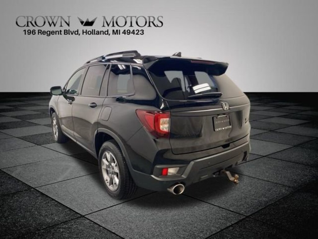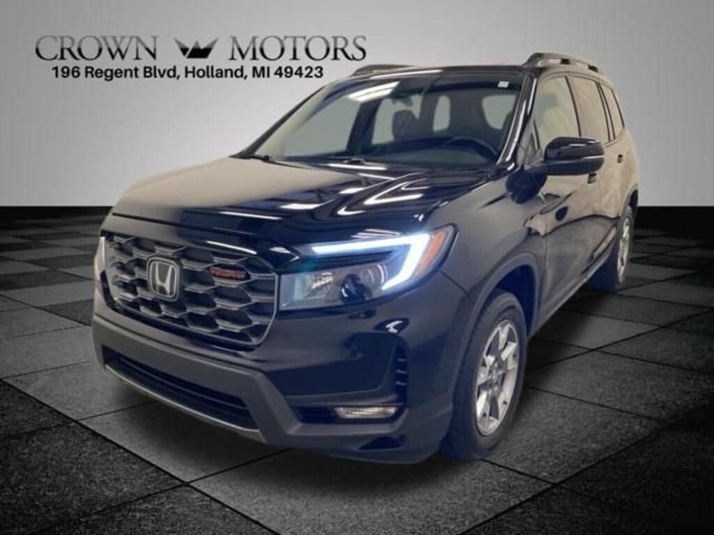 CARFAX One-Owner. 2022 Honda Passport TrailSport AWD 9-Speed Automatic 3.5L V6 24V SOHC i-VTEC **ONE OWNER**, **LOCAL TRADE IN**, AWD, 4-Wheel Disc Brakes, 4.334 Axle Ratio, 7 Speakers, A/V remote: CabinControl, ABS brakes, Air Conditioning, Alloy wheels, AM/FM radio: SiriusXM, Apple CarPlay/Android Auto, Auto High-beam Headlights, Auto-dimming Rear-View mirror, Automatic temperature control, Blind Spot Information (BSI) System warning, Brake assist, Bumpers: body-color, Compass, Delay-off headlights, Driver door bin, Driver vanity mirror, Driver's Seat Mounted Armrest, Dual front impact airbags, Dual front side impact airbags, Electronic Stability Control, Emergency communication system: HondaLink Assist, Exterior Parking Camera Rear, Forward collision: Collision Mitigation Braking System (CMBS) + FCW mitigation, Four wheel independent suspension, Front anti-roll bar, Front Bucket Seats, Front Center Armrest, Front dual zone A/C, Front fog lights, Front reading lights, Fully automatic headlights, Garage door transmitter: HomeLink, Heated door mirrors, Heated Front Bucket Seats, Heated front seats, Illuminated entry, Lane departure: Lane Keeping Assist System (LKAS) active, Leather-Trimmed Seats w/Orange Stitching, Low tire pressure warning, Memory seat, Navigation system: Honda Satellite-Linked Navigation System, Occupant sensing airbag, Outside temperature display, Overhead airbag, Overhead console, Panic alarm, Passenger door bin, Passenger seat mounted armrest, Passenger vanity mirror, Power door mirrors, Power driver seat, Power Liftgate, Power moonroof, Power passenger seat, Power steering, Power windows, Radio data system, Radio: 215-Watt Audio System w/7 Speakers, Rear air conditioning, Rear anti-roll bar, Rear reading lights, Rear seat center armrest, Rear window defroster, Rear window wiper, Remote keyless entry, Roof rack: rails only, Security system, Speed control, Speed-sensing steering, Split folding rear seat, Spoiler, Steering wheel mounted audio controls, Tachometer, Telescoping steering wheel, Tilt steering wheel, Traction control, Trip computer, Turn signal indicator mirrors, Variably intermittent wipers, Wheels: 18 Machine-Finish Alloy, AWD.Recent Arrival!Awards:* ALG Residual Value Awards, Residual Value AwardsCall us today for a test drive at 1-616-394-5599 or for a quick question TEXT 616-499-2225. Feel free to click on the Carfax. It is FREE! Customer Satisfaction Comes First Award-Winning Service Department Family-Owned and Community-Focused As a local business, we proudly support West Michigan schools, charities, and organizations, including Holland Public Schools, Zeeland Schools, Hope College, Evergreen Commons, and many more. No Gimmicks, No Hidden Fees Crown Motors provides straightforward, transparent pricing. Convenient Online Shopping Apply for financing, get a trade-in evaluation, and browse our inventory from home. Our online team is available to assist you every step of the way. Decades of Experience With over 25 years in business, we have the expertise to handle any situation and help you find the right vehicle. Customer Convenience Comes First we offer a play area for kids, and many modern amenities. Proven Customer Satisfaction Don't just take our word for it-see what our customers have to say about their experience at Crown Motors.