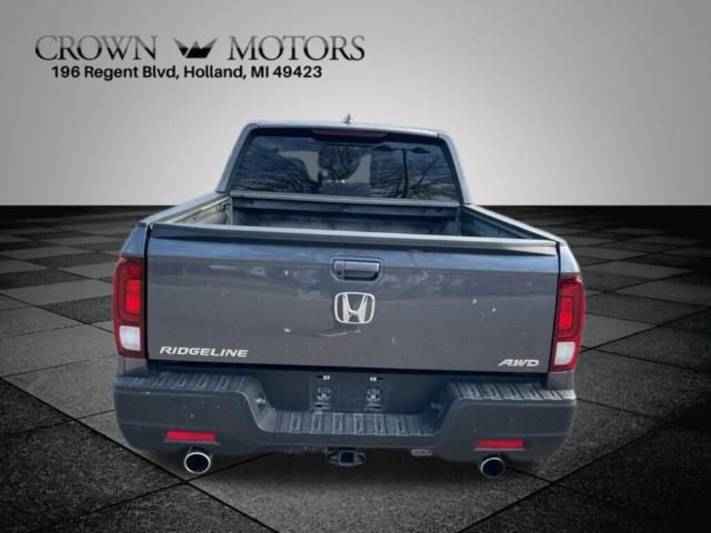 CARFAX One-Owner. Certified. Modern Steel Metallic 2023 Honda Ridgeline RTL AWD 9-Speed Automatic 3.5L V6 SOHC i-VTEC 24V **ONE OWNER**, ** LOW MILES**, **HONDA CERTIFIED**, **ACCIDENT FREE**, HondaTrue Certified Certified, AWD, Black Leather, 4-Wheel Disc Brakes, 4.33 Axle Ratio, 7 Speakers, ABS brakes, Air Conditioning, Alloy wheels, AM/FM radio: SiriusXM, Apple CarPlay/Android Auto, Auto-dimming Rear-View mirror, Automatic temperature control, Blind Spot Information (BSI) System warning, Bluetooth® Hands-Free Link, Brake assist, Bumpers: body-color, Delay-off headlights, Driver door bin, Driver vanity mirror, Driver's Seat Mounted Armrest, Dual front impact airbags, Dual front side impact airbags, Electronic Stability Control, Exterior Parking Camera Rear, Four wheel independent suspension, Front anti-roll bar, Front Bucket Seats, Front dual zone A/C, Front fog lights, Front reading lights, Fully automatic headlights, Garage door transmitter: HomeLink, Heated door mirrors, Heated Front Bucket Seats, Heated front seats, Illuminated entry, Leather Seat Trim, Low tire pressure warning, Memory seat, Occupant sensing airbag, Outside temperature display, Overhead airbag, Overhead console, Panic alarm, Passenger door bin, Passenger seat mounted armrest, Passenger vanity mirror, Power door mirrors, Power driver seat, Power moonroof, Power passenger seat, Power steering, Power windows, Radio data system, Radio: 215-Watt Audio System w/7 Speakers, Rear air conditioning, Rear anti-roll bar, Rear reading lights, Rear seat center armrest, Rear step bumper, Rear window defroster, Remote keyless entry, Security system, SiriusXM, Speed control, Speed-sensing steering, Split folding rear seat, Steering wheel mounted audio controls, Tachometer, Telescoping steering wheel, Tilt steering wheel, Traction control, Trip computer, Turn signal indicator mirrors, Variably intermittent wipers, Wheels: 18" Exclusive Pewter Gray Alloy, AWD, Black Leather.