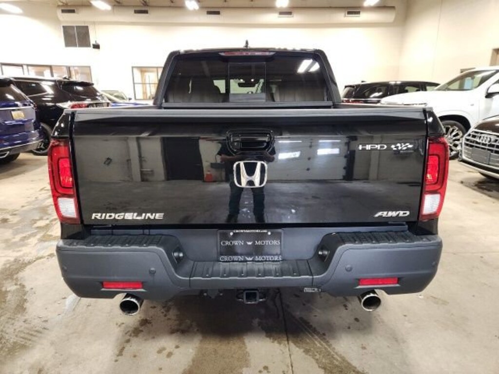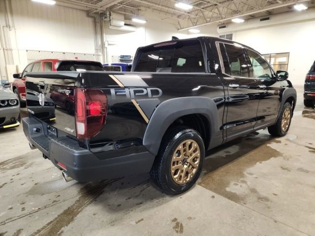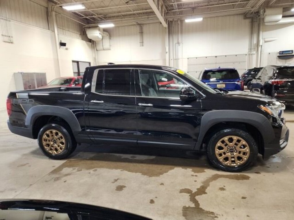 CARFAX One-Owner. Clean CARFAX. Black Metallic 2023 Honda Ridgeline RTL-E AWD 9-Speed Automatic 3.5L V6 SOHC i-VTEC 24V **ONE OWNER**, ** LOW MILES**, **ACCIDENT FREE**, Jet Black Leather, 4-Wheel Disc Brakes, 4.33 Axle Ratio, 8 Speakers, ABS brakes, Air Conditioning, Alloy wheels, AM/FM radio: SiriusXM, Apple CarPlay/Android Auto, Auto High-beam Headlights, Auto-dimming Rear-View mirror, Automatic temperature control, Blind Spot Information (BSI) System warning, Bluetooth® Hands-Free Link, Brake assist, Bumpers: body-color, Compass, Delay-off headlights, Driver door bin, Driver vanity mirror, Driver's Seat Mounted Armrest, Dual front impact airbags, Dual front side impact airbags, Electronic Stability Control, Exterior Parking Camera Rear, Four wheel independent suspension, Front anti-roll bar, Front Bucket Seats, Front dual zone A/C, Front fog lights, Front reading lights, Fully automatic headlights, Garage door transmitter: HomeLink, Heated door mirrors, Heated Front Bucket Seats, Heated front seats, Heated steering wheel, Honda Satellite-Linked Navigation System, Illuminated entry, Leather Seat Trim, Low tire pressure warning, Memory seat, Navigation system: Honda Satellite-Linked Navigation System, Occupant sensing airbag, Outside temperature display, Overhead airbag, Overhead console, Panic alarm, Passenger door bin, Passenger seat mounted armrest, Passenger vanity mirror, Power door mirrors, Power driver seat, Power moonroof, Power passenger seat, Power steering, Power windows, Radio data system, Radio: 540-Watt Premium Audio System w/8 Speakers, Rear air conditioning, Rear anti-roll bar, Rear reading lights, Rear seat center armrest, Rear step bumper, Rear window defroster, Remote keyless entry, Security system, SiriusXM, Speed control, Speed-sensing steering, Split folding rear seat, Steering wheel mounted audio controls, Tachometer, Telescoping steering wheel, Tilt steering wheel, Traction control, Trip computer, Turn signal indicator mirrors, Variably intermittent wipers, Wheels: 18" Exclusive Pewter Gray Alloy, Jet Black Leather.