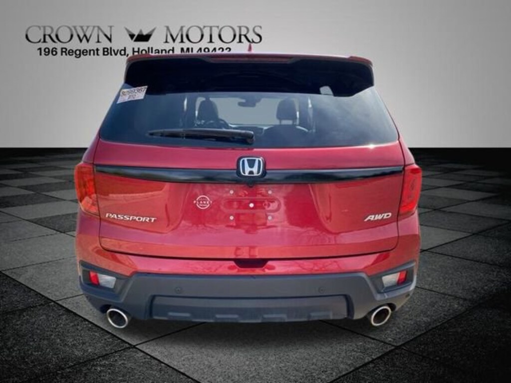 CARFAX One-Owner. Clean CARFAX. Certified. Radiant Red Metallic II 2024 Honda Passport EX-L AWD 9-Speed Automatic 3.5L V6 24V SOHC i-VTEC **ONE OWNER**, **HONDA CERTIFIED**, **ACCIDENT FREE**, HondaTrue Certified Certified, 4-Wheel Disc Brakes, 4.334 Axle Ratio, 7 Speakers, A/V remote: CabinControl, ABS brakes, Air Conditioning, Alloy wheels, AM/FM radio: SiriusXM, Apple CarPlay/Android Auto, Auto High-beam Headlights, Auto-dimming Rear-View mirror, Automatic temperature control, Blind Spot Information (BSI) System warning, Brake assist, Bumpers: body-color, Delay-off headlights, Driver door bin, Driver vanity mirror, Driver's Seat Mounted Armrest, Dual front impact airbags, Dual front side impact airbags, Electronic Stability Control, Emergency communication system: HondaLink Assist, Exterior Parking Camera Rear, Four wheel independent suspension, Front anti-roll bar, Front Bucket Seats, Front Center Armrest, Front dual zone A/C, Front reading lights, Fully automatic headlights, Garage door transmitter: HomeLink, Heated door mirrors, Heated Front Bucket Seats, Heated front seats, Illuminated entry, Lane departure: Lane Keeping Assist System (LKAS) active, Leather-Trimmed Seats, Low tire pressure warning, Occupant sensing airbag, Outside temperature display, Overhead airbag, Overhead console, Panic alarm, Passenger door bin, Passenger seat mounted armrest, Passenger vanity mirror, Power door mirrors, Power driver seat, Power Liftgate, Power moonroof, Power passenger seat, Power steering, Power windows, Radio data system, Radio: 215-Watt Audio System w/7 Speakers, Rear air conditioning, Rear anti-roll bar, Rear reading lights, Rear seat center armrest, Rear window defroster, Rear window wiper, Remote keyless entry, Security system, Speed control, Speed-sensing steering, Split folding rear seat, Spoiler, Steering wheel mounted audio controls, Tachometer, Telescoping steering wheel, Tilt steering wheel, Traction control, Trip computer, Turn signal indicator mirrors, Variably intermittent wipers, Wheels: 20 Sparkle Silver Alloy.