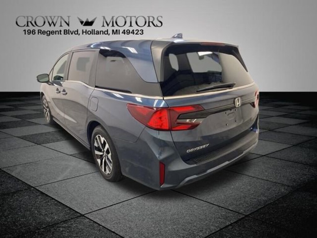 CARFAX One-Owner. Clean CARFAX. Certified. Smoke Blue Pearl 2025 Honda Odyssey EX-L FWD 10-Speed Automatic 3.5L V6 SOHC i-VTEC 24V **ONE OWNER**, ** LOW MILES**, **HONDA CERTIFIED**, **ACCIDENT FREE**, HondaTrue Certified Certified, 18 Machine-Finished Alloy Wheels, 3rd row seats: split-bench, 4-Wheel Disc Brakes, 7 Speakers, ABS brakes, Adaptive Cruise Control: Adaptive Cruise Control (ACC) with Low-Speed Follow, Air Conditioning, Alloy wheels, AM/FM radio: SiriusXM, Anti-whiplash front head restraints, Apple CarPlay/Android Auto, Auto High-beam Headlights, Auto-dimming Rear-View mirror, Automatic temperature control, Blind Spot Information (BSI) System warning, Brake assist, Bumpers: body-color, Delay-off headlights, Driver door bin, Driver vanity mirror, Driver's Seat Mounted Armrest, Dual front impact airbags, Dual front side impact airbags, Electronic Stability Control, Exterior Parking Camera Rear, Four wheel independent suspension, Front anti-roll bar, Front Bucket Seats, Front dual zone A/C, Front fog lights, Front reading lights, Fully automatic headlights, Garage door transmitter: HomeLink, Heated door mirrors, Heated Front Bucket Seats, Heated front seats, Illuminated entry, Knee airbag, Lane departure: Lane Keeping Assist System (LKAS) active, Leather steering wheel, Leather Trimmed Seats, Low tire pressure warning, Memory seat, Occupant sensing airbag, Outside temperature display, Overhead airbag, Overhead console, Panic alarm, Passenger door bin, Passenger seat mounted armrest, Passenger vanity mirror, Power door mirrors, Power driver seat, Power Liftgate, Power moonroof, Power passenger seat, Power steering, Power windows, Radio data system, Radio: 160-Watt AM/FM/HD/SiriusXM Audio System, Rear air conditioning, Rear anti-roll bar, Rear reading lights, Rear seat center armrest, Rear window defroster, Rear window wiper, Reclining 3rd row seat, Remote keyless entry, Security system, Speed control, Speed-sensing steering, Speed-Sensitive Wipers, Split folding rear seat, Spoiler, Steering wheel mounted audio controls, Tachometer, Telescoping steering wheel, Tilt steering wheel, Traction control, Trip computer, Turn signal indicator mirrors, Variably intermittent wipers.