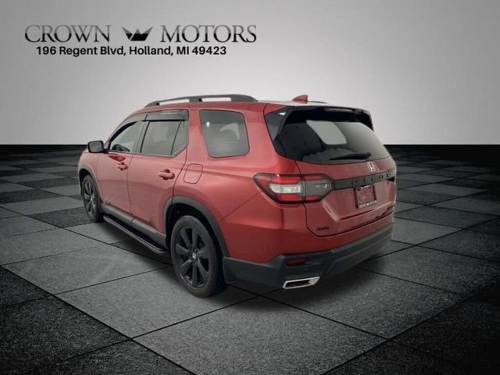 CARFAX One-Owner. Clean CARFAX. Radiant Red Metallic II 2025 Honda Pilot Black Edition AWD 10-Speed Automatic 3.5L V6 DOHC 24V **ONE OWNER**, **ACCIDENT FREE**, AWD, 12 Speakers, 3rd row seats: split-bench, 4-Wheel Disc Brakes, 4.167 Axle Ratio, ABS brakes, Adaptive Cruise Control: Adaptive Cruise Control (ACC) with Low-Speed Follow, Air Conditioning, Alloy wheels, AM/FM radio: SiriusXM, Apple CarPlay/Android Auto, Auto High-beam Headlights, Auto-dimming door mirrors, Auto-dimming Rear-View mirror, Automatic temperature control, Blind Spot Information (BSI) System warning, Bose Premium Sound System, Brake assist, Bumpers: body-color, Compass, Delay-off headlights, Driver door bin, Driver vanity mirror, Dual front impact airbags, Dual front side impact airbags, Electronic Stability Control, Emergency communication system: HondaLink, Exterior Parking Camera Rear, Four wheel independent suspension, Front anti-roll bar, Front Bucket Seats, Front Center Armrest, Front dual zone A/C, Front fog lights, Front reading lights, Fully automatic headlights, Garage door transmitter: HomeLink, Heads-Up Display, Heated door mirrors, Heated front seats, Heated rear seats, Heated steering wheel, Honda Satellite-Linked Navigation System, HondaLink Subscription Services, Illuminated entry, Knee airbag, Lane departure: Lane Keeping Assist System (LKAS) active, Low tire pressure warning, Memory seat, Navigation system: Honda Satellite-Linked Navigation System, Occupant sensing airbag, Outside temperature display, Overhead airbag, Overhead console, Panic alarm, Passenger door bin, Passenger vanity mirror, Perforated Leather Seat Trim, Power door mirrors, Power driver seat, Power Liftgate, Power moonroof, Power passenger seat, Power steering, Power windows, Radio data system, Rain sensing wipers, Rear air conditioning, Rear anti-roll bar, Rear reading lights, Rear seat center armrest, Rear window defroster, Rear window wiper, Reclining 3rd row seat, Remote keyless entry, Security system, SiriusXM, Speed control, Speed-sensing steering, Speed-Sensitive Wipers, Split folding rear seat, Spoiler, Steering wheel mounted audio controls, Tachometer, Telescoping steering wheel, Tilt steering wheel, Traction control, Trip computer, Turn signal indicator mirrors, Variably intermittent wipers, Ventilated front seats, AWD.