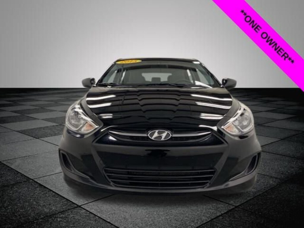CARFAX One-Owner. Ultra Black 2015 Hyundai Accent GS FWD 6-Speed Automatic with Overdrive 1.6L I4 DGI DOHC 16V **ONE OWNER**, ** LOW MILES**, **LOCAL TRADE IN**, Black Cloth, 6 Speakers, ABS brakes, Air Conditioning, AM/FM radio: SiriusXM, Anti-whiplash front head restraints, Brake assist, Bumpers: body-color, CD player, Cloth Seat Trim, Driver door bin, Driver vanity mirror, Dual front impact airbags, Dual front side impact airbags, Electronic Stability Control, Front anti-roll bar, Front Bucket Seats, Front reading lights, Front wheel independent suspension, Heated door mirrors, Illuminated entry, Low tire pressure warning, Occupant sensing airbag, Outside temperature display, Overhead airbag, Overhead console, Panic alarm, Passenger door bin, Passenger vanity mirror, Power door mirrors, Power steering, Power windows, Radio: AM/FM/SiriusXM/CD/MP3 Audio System, Rear window defroster, Rear window wiper, Remote keyless entry, Speed control, Speed-sensing steering, Split folding rear seat, Tachometer, Tilt steering wheel, Traction control, Trip computer, Wheels: 14" x 5.0J Steel w/Cover, Black Cloth.