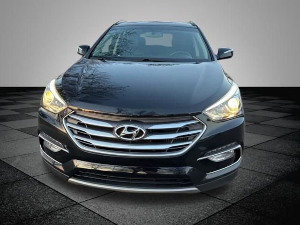 Twilight Black 2018 Hyundai Santa Fe Sport 2.0T AWD 6-Speed Automatic with Shiftronic 2.0L I4 DGI DOHC 16V Turbocharged 18" x 7.5" Alloy Wheels, 4-Wheel Disc Brakes, 6 Speakers, ABS brakes, Air Conditioning, Alloy wheels, AM/FM radio: SiriusXM, Apple CarPlay & Android Auto, Auto-dimming Rear-View mirror, Automatic temperature control, Axle Ratio 3.51, Brake assist, Bumper Applique, Bumpers: body-color, Cargo Net, Cargo Tray, Carpeted Floor Mats, CD player, Compass, Delay-off headlights, Driver door bin, Driver vanity mirror, Dual front impact airbags, Dual front side impact airbags, Electronic Stability Control, Emergency communication system: Blue Link, Exterior Parking Camera Rear, First Aid Kit, Four wheel independent suspension, Front anti-roll bar, Front Bucket Seats, Front Center Armrest, Front dual zone A/C, Front fog lights, Front reading lights, Fully automatic headlights, Garage door transmitter: HomeLink, Heated door mirrors, Heated Front Bucket Seats, Heated front seats, Illuminated entry, Knee airbag, Leather Seating Surface, Leather steering wheel, Low tire pressure warning, Mudguards, Occupant sensing airbag, Option Group 01, Outside temperature display, Overhead airbag, Overhead console, Panic alarm, Passenger door bin, Passenger vanity mirror, Power door mirrors, Power driver seat, Power Liftgate, Power passenger seat, Power steering, Power windows, Radio: AM/FM/SiriusXM/CD/HD/MP3 Display Audio, Rear anti-roll bar, Rear seat center armrest, Rear window defroster, Rear window wiper, Remote keyless entry, Roof rack: rails only, Security system, Speed control, Speed-sensing steering, Split folding rear seat, Spoiler, Steering wheel mounted audio controls, Tachometer, Telescoping steering wheel, Tilt steering wheel, Traction control, Trip computer, Turn signal indicator mirrors, Variably intermittent wipers.