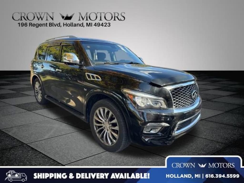 Black Obsidian 2016 INFINITI QX80 Limited 4WD 7-Speed Automatic 5.6L V8 **LEATHER**, **LOCAL TRADE IN**, 4WD, ABS brakes, Active Cruise Control, Alloy wheels, Electronic Stability Control, Front dual zone A/C, Heated door mirrors, Heated Front Bucket Seats, Heated front seats, Heated rear seats, Illuminated entry, Low tire pressure warning, Navigation System, Power Liftgate, Power moonroof, Remote keyless entry, Traction control.