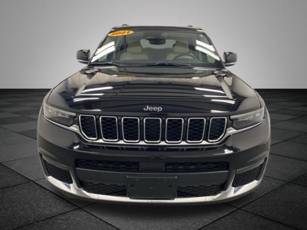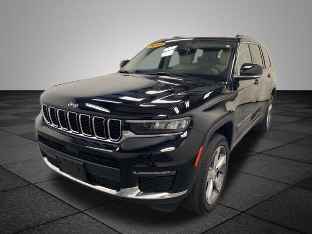 Diamond Black Crystal Pearlcoat 2021 Jeep Grand Cherokee L Limited 4WD 8-Speed Automatic 3.6L V6 24V VVT 4WD, 10.1" Touchscreen Display, 3.45 Rear Axle Ratio, 3rd row seats: split-bench, 4-Wheel Disc Brakes, 506 Watt Amplifier, 6 Speakers, 9 Amplified Speakers w/Subwoofer, ABS brakes, Air Conditioning, Alloy wheels, AM/FM radio: SiriusXM w/360L, Anti-whiplash front head restraints, Apple CarPlay, Apple CarPlay/Android Auto, Audio memory, Auto High-beam Headlights, Automatic temperature control, Brake assist, Bridgestone Brand Tires, Bumpers: body-color, Capri Leather Seats, Compass, Connected Travel & Traffic Services, Connectivity - US/Canada, Delay-off headlights, Disassociated Touchscreen Display, Driver door bin, Driver vanity mirror, Dual front impact airbags, Dual front side impact airbags, Dual-Pane Panoramic Sunroof, Electronic Stability Control, Emergency communication system, Four wheel independent suspension, Front anti-roll bar, Front Bucket Seats, Front Center Armrest w/Storage, Front dual zone A/C, Front fog lights, Front reading lights, Fully automatic headlights, Garage door transmitter, Google Android Auto, GPS Antenna Input, GPS Navigation, HD Radio, Heated door mirrors, Heated front seats, Heated rear seats, Heated steering wheel, Illuminated entry, Integrated Center Stack Radio, Integrated Voice Command w/Bluetooth, Interior Rear Facing Camera, Knee airbag, Leather steering wheel, Low tire pressure warning, Manual Fold Seatbacks, Memory seat, Normal Duty Suspension, Occupant sensing airbag, Outside temperature display, Overhead airbag, Overhead console, Panic alarm, ParkView Rear Back-Up Camera, Passenger door bin, Passenger vanity mirror, Power door mirrors, Power driver seat, Power Liftgate, Power passenger seat, Power steering, Power windows, Quick Order Package 22E, Radio data system, Radio: Uconnect 5 Nav w/10.1" Display, Radio: Uconnect 5 w/8.4" Display, Rear air conditioning, Rear anti-roll bar, Rear reading lights, Rear window defroster, Rear window wiper, Reclining 3rd row seat, Remote keyless entry, Roof rack: rails only, Security system, SiriusXM Satellite Radio, SiriusXM w/360L, Speed control, Speed-Sensitive Wipers, Split folding rear seat, Spoiler, Steering wheel mounted audio controls, Tachometer, Telescoping steering wheel, Tilt steering wheel, Traction control, Trip computer, Turn signal indicator mirrors, USB Host Flip, Variably intermittent wipers, Voltmeter, Wheels: 18" x 8.0" Fully Painted Aluminum 2, Wheels: 20" x 8.5" Polished/Painted Aluminum (DISC), ** LOW MILES**, 4WD.