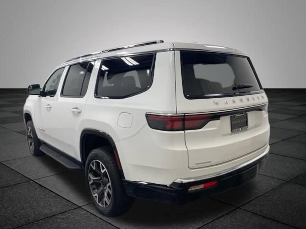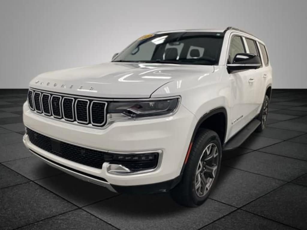 Bright White Clearcoat 2023 Jeep Wagoneer Series III 4WD 8-Speed Automatic 3.0L I6 2nd Row Manual Window Shades, 60/40 Power Recline 3rd Row Seat, 7-Passenger Seating, Convenience Group I, Drowsy Driver Detection, Flexible Seating Group, Floor Console w/Cupholder, Heads-Up Display, Intersection Collision Assist System, Navigation System, P&P Park & Unpark Assist w/Stop System, Power Tip/Slide Recline 2nd Row Buckets, Preferred Equipment Group, Quadra-Lift Air Suspension, Quick Order Package 25N, Semi Active Damping, Side Distance Warning, Surround View Camera System, Traffic Sign Recognition, 10 Speakers, 20" x 9.0" Aluminum Wheels, 3.55 Rear Axle Ratio, 3rd row seats: bench, 4-Wheel Disc Brakes, ABS brakes, Adjustable pedals, Air Conditioning, Alloy wheels, AM/FM radio: SiriusXM with 360L, Anti-whiplash front head restraints, Audio memory, Auto High-beam Headlights, Auto-dimming door mirrors, Auto-dimming Rear-View mirror, Auto-leveling suspension, Automatic temperature control, Brake assist, Bumpers: body-color, Compass, Delay-off headlights, Driver door bin, Driver vanity mirror, Driver's Seat Mounted Armrest, Dual front impact airbags, Dual front side impact airbags, Electronic Stability Control, Emergency communication system: Automatic SOS Call, Exterior Parking Camera Rear, Four wheel independent suspension, Front anti-roll bar, Front Bucket Seats, Front Center Armrest w/Storage, Front dual zone A/C, Front fog lights, Front reading lights, Fully automatic headlights, Garage door transmitter, Genuine wood console insert, Genuine wood dashboard insert, Genuine wood door panel insert, Heated door mirrors, Heated front seats, Heated rear seats, Heated steering wheel, Illuminated entry, Knee airbag, Leather Trimmed Bucket Seats, Low tire pressure warning, Memory seat, Normal Duty Suspension, Occupant sensing airbag, Outside temperature display, Overhead airbag, Overhead console, Panic alarm, Passenger door bin, Passenger seat mounted armrest, Passenger vanity mirror, Pedal memory, Power adjustable front head restraints, Power door mirrors, Power driver seat, Power Liftgate, Power passenger seat, Power steering, Power windows, Radio data system, Radio: Uconnect 5 Nav w/10.1" Display, Rain sensing wipers, Rear air conditioning, Rear anti-roll bar, Rear dual zone A/C, Rear reading lights, Rear seat center armrest, Rear window defroster, Rear window wiper, Reclining 3rd row seat, Remote keyless entry, Security system, Speed control, Speed-sensing steering, Speed-Sensitive Wipers, Split folding rear seat, Steering wheel memory, Steering wheel mounted audio controls, Tachometer, Telescoping steering wheel, Tilt steering wheel, Traction control, Trip computer, Turn signal indicator mirrors, Variably intermittent wipers, Ventilated front seats, Voltmeter, **Bluetooth**, **Leather**, **Rear Back Up Camera**, 2nd Row Manual Window Shades, 60/40 Power Recline 3rd Row Seat, 7-Passenger Seating, Convenience Group I, Drowsy Driver Detection, Flexible Seating Group, Floor Console w/Cupholder, Heads-Up Display, Intersection Collision Assist System, Navigation System, P&P Park & Unpark Assist w/Stop System, Power Tip/Slide Recline 2nd Row Buckets, Preferred Equipment Group, Quadra-Lift Air Suspension, Quick Order Package 25N, Semi Active Damping, Side Distance Warning, Surround View Camera System, Traffic Sign Recognition.