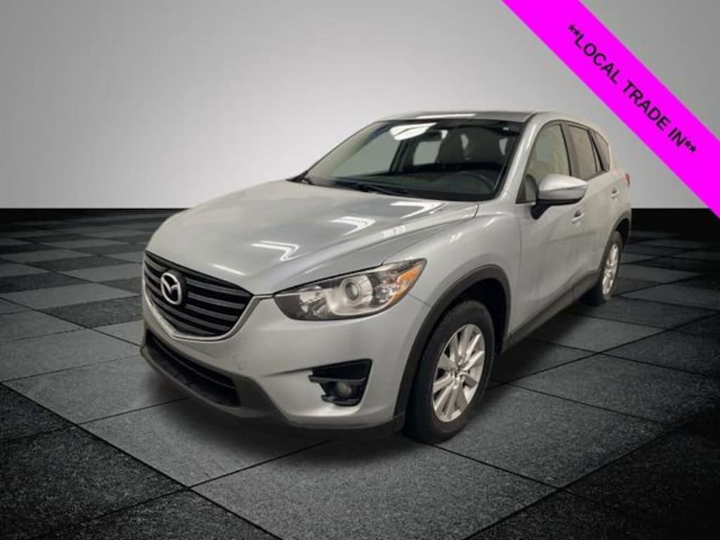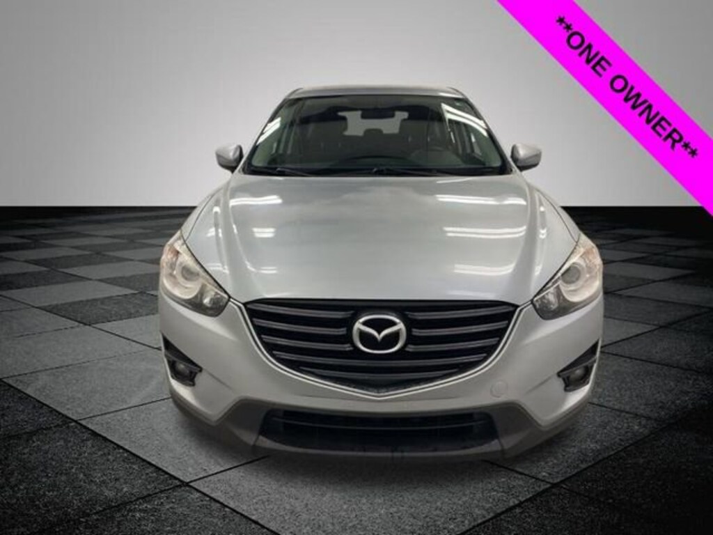 CARFAX One-Owner. Sonic Silver Metallic 2016 Mazda CX-5 Touring AWD 6-Speed Automatic SKYACTIV® 2.5L 4-Cylinder DOHC 16V **ONE OWNER**, **LOCAL TRADE IN**, AWD, 17 x 7J Aluminum Alloy Wheels, 4-Wheel Disc Brakes, 4.62 Axle Ratio, 6 Speakers, ABS brakes, Air Conditioning, Alloy wheels, AM/FM radio, Brake assist, Bumpers: body-color, CD player, Cloth Seat Trim, Delay-off headlights, Driver door bin, Driver vanity mirror, Dual front impact airbags, Dual front side impact airbags, Electronic Stability Control, Exterior Parking Camera Rear, Four wheel independent suspension, Front anti-roll bar, Front Bucket Seats, Front Center Armrest, Front fog lights, Front reading lights, Illuminated entry, Leather Shift Knob, Low tire pressure warning, Occupant sensing airbag, Outside temperature display, Overhead airbag, Overhead console, Panic alarm, Passenger door bin, Passenger vanity mirror, Power door mirrors, Power driver seat, Power steering, Power windows, Radio data system, Radio: AM/FM/CD/HD Modular Audio System w/6 Spkrs, Rear anti-roll bar, Rear reading lights, Rear seat center armrest, Rear window defroster, Rear window wiper, Remote keyless entry, Speed control, Speed-sensing steering, Split folding rear seat, Spoiler, Steering wheel mounted audio controls, Tachometer, Telescoping steering wheel, Tilt steering wheel, Traction control, Trip computer, Turn signal indicator mirrors, Variably intermittent wipers, AWD.