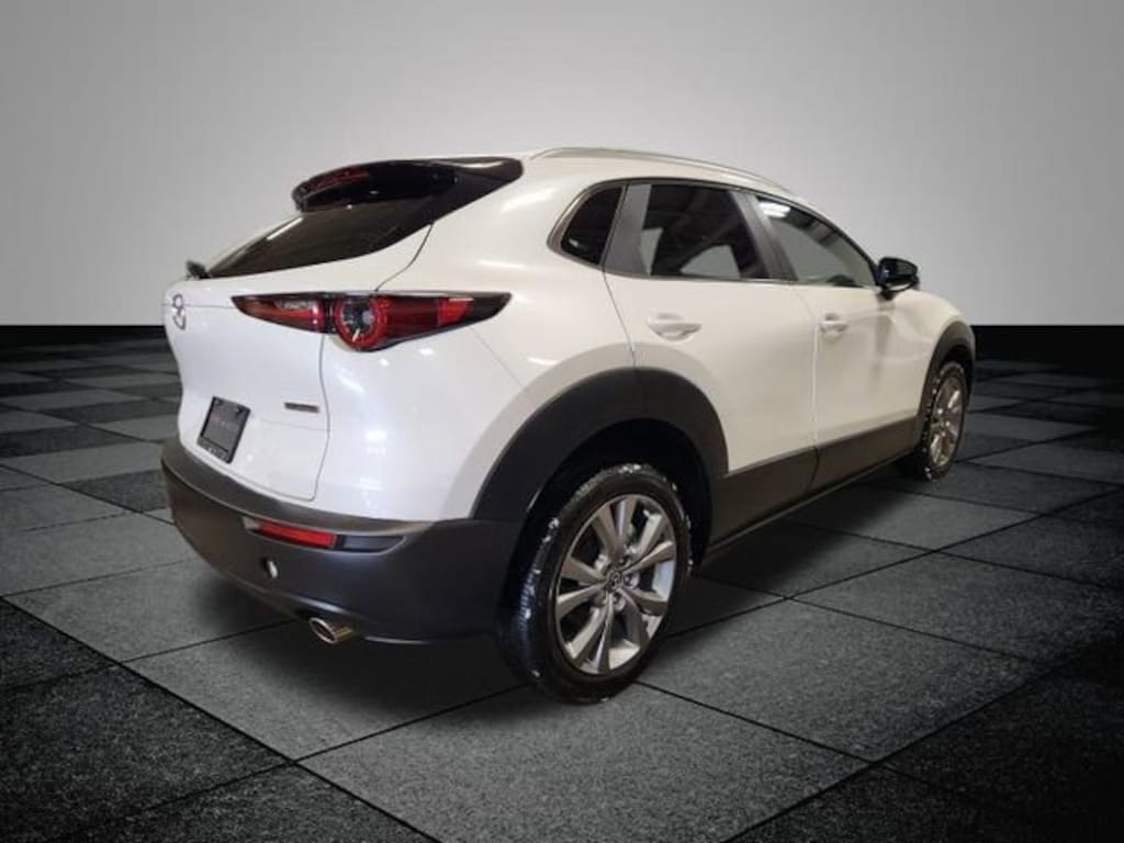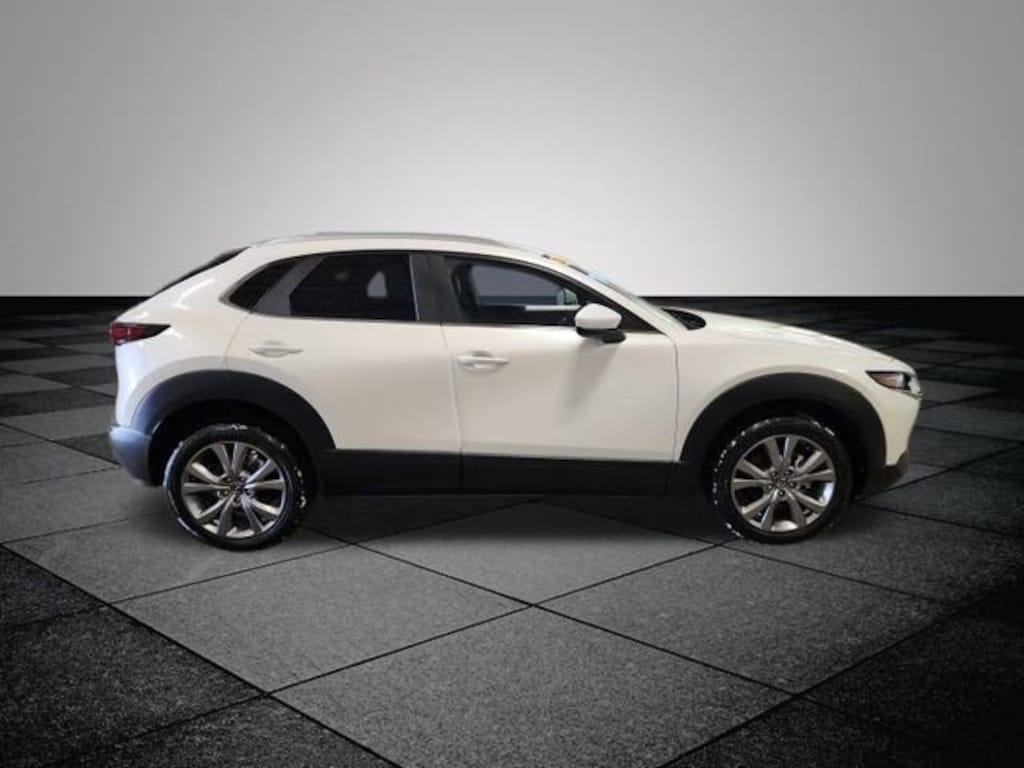 CARFAX One-Owner. Snowflake White Pearl Mica 2023 Mazda CX-30 2.5 S Preferred Package AWD 6-Speed Automatic SKYACTIV® 2.5L 4-Cylinder DOHC 16V AWD, 4-Wheel Disc Brakes, 4.095 Axle Ratio, 8 Speakers, ABS brakes, Air Conditioning, Alloy wheels, AM/FM radio, AppLink/Apple CarPlay and Android Auto, Auto High-beam Headlights, Automatic temperature control, Brake assist, Bumpers: body-color, Compass, Delay-off headlights, Driver door bin, Driver vanity mirror, Dual front impact airbags, Dual front side impact airbags, Electronic Stability Control, Emergency communication system: Mazda Connected Services (3-year complimentary trial included), Exterior Parking Camera Rear, Front anti-roll bar, Front Bucket Seats, Front Center Armrest, Front dual zone A/C, Front reading lights, Front wheel independent suspension, Fully automatic headlights, Heated Front Bucket Seats, Heated front seats, Illuminated entry, Knee airbag, Leather Shift Knob, Leather steering wheel, Leatherette Seat Trim, Low tire pressure warning, MAZDA CONNECT Infotainment System, Memory seat, Moon Roof Credit, Occupant sensing airbag, Outside temperature display, Overhead airbag, Overhead console, Panic alarm, Passenger door bin, Passenger vanity mirror, Power door mirrors, Power driver seat, Power moonroof, Power steering, Power windows, Radio data system, Radio: AM/FM/HD Audio System, Rain sensing wipers, Rear seat center armrest, Rear side impact airbag, Rear window defroster, Rear window wiper, Remote keyless entry, Snowflake White Pearl Mica Paint, Speed control, Speed-sensing steering, Split folding rear seat, Spoiler, Steering wheel mounted audio controls, Tachometer, Telescoping steering wheel, Tilt steering wheel, Traction control, Trip computer, Turn signal indicator mirrors, Variably intermittent wipers, Wheels: 18" x 7J Aluminum Alloy, AWD.