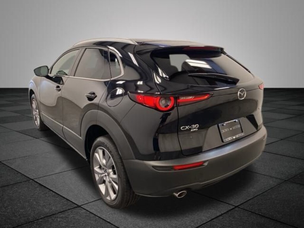 Jet Black Mica 2023 Mazda CX-30 2.5 S Premium Package AWD 6-Speed Automatic SKYACTIV® 2.5L 4-Cylinder DOHC 16V AWD, 4-Wheel Disc Brakes, 4.095 Axle Ratio, 8 Speakers, ABS brakes, Air Conditioning, Alloy wheels, AppLink/Apple CarPlay and Android Auto, Auto High-beam Headlights, Automatic temperature control, Bose Audio Credit, Brake assist, Bumpers: body-color, Cargo Cover, Compass, Delay-off headlights, Driver door bin, Driver vanity mirror, Dual front impact airbags, Dual front side impact airbags, Electronic Stability Control, Emergency communication system: Mazda Connected Services (3-year complimentary trial included), Exterior Parking Camera Rear, Front anti-roll bar, Front Bucket Seats, Front Center Armrest, Front dual zone A/C, Front reading lights, Front wheel independent suspension, Fully automatic headlights, Heads-Up Display, Heated Front Bucket Seats, Heated front seats, Illuminated entry, Knee airbag, Leather Seat Trim, Leather Shift Knob, Leather steering wheel, Low tire pressure warning, MAZDA CONNECT Infotainment System, Memory seat, Navigation system: MAZDA CONNECT, Occupant sensing airbag, Outside temperature display, Overhead airbag, Overhead console, Panic alarm, Passenger door bin, Passenger vanity mirror, Power door mirrors, Power driver seat, Power Liftgate, Power moonroof, Power steering, Power windows, Radio data system, Radio: AM/FM/HD Audio System w/Mazda Navigation, Rain sensing wipers, Rear seat center armrest, Rear side impact airbag, Rear window defroster, Rear window wiper, Remote keyless entry, Speed control, Speed-sensing steering, Split folding rear seat, Spoiler, Steering wheel mounted audio controls, Tachometer, Telescoping steering wheel, Tilt steering wheel, Traction control, Trip computer, Turn signal indicator mirrors, Variably intermittent wipers, Wheel Locks, Wheels: 18" x 7J Aluminum Alloy, AWD.