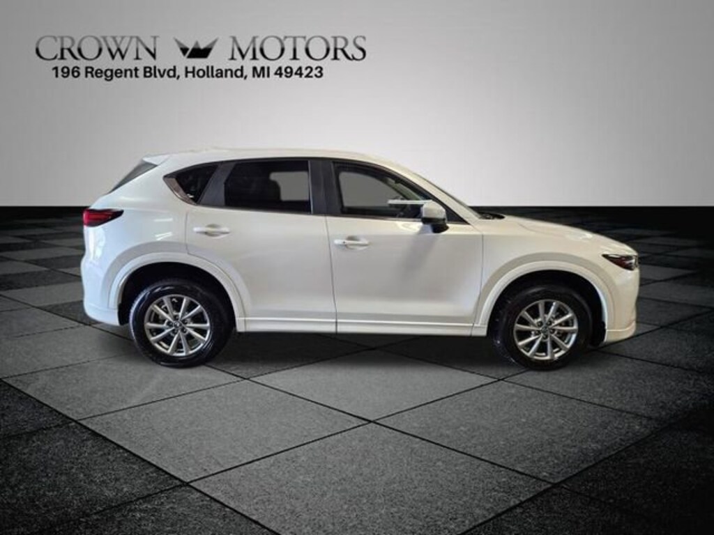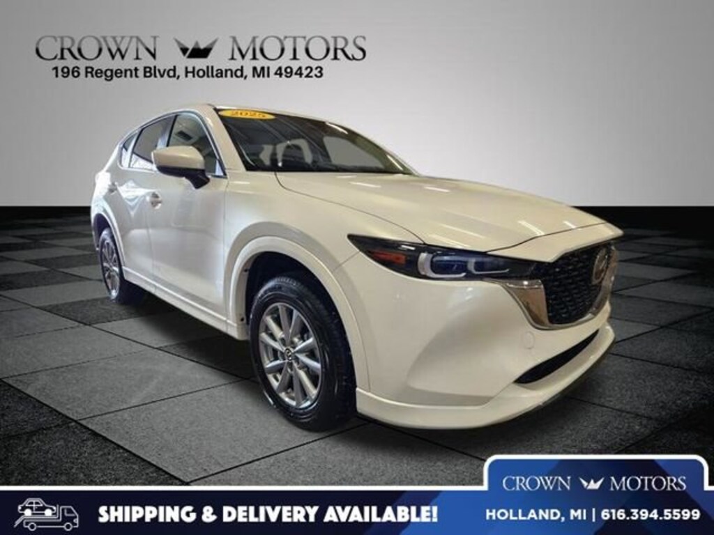 Clean CARFAX. Certified. Rhodium White Metallic 2025 Mazda CX-5 2.5 S Select Package AWD 6-Speed Automatic SKYACTIV® 2.5L 4-Cylinder DOHC 16V **ONE OWNER**, ** LOW MILES**, **MAZDA CERTIFIED**, **ACCIDENT FREE**, **LOCAL TRADE IN**, Mazda Certified Pre-Owned Certified, AWD, 4-Wheel Disc Brakes, 6 Speakers, ABS brakes, Air Conditioning, Alloy wheels, AM/FM radio, AppLink/Apple CarPlay and Android Auto, Auto High-beam Headlights, Automatic temperature control, Brake assist, Bumpers: body-color, Delay-off headlights, Driver door bin, Driver vanity mirror, Dual front impact airbags, Dual front side impact airbags, E911 Automatic Emergency Notification, Electronic Stability Control, Emergency communication system: MAZDA CONNECT, Exterior Parking Camera Rear, Four wheel independent suspension, Front anti-roll bar, Front Bucket Seats, Front Center Armrest w/Storage, Front dual zone A/C, Front reading lights, Fully automatic headlights, Heated Front Bucket Seats, Heated front seats, Illuminated entry, Infotainment System Voice Command, Leather Shift Knob, Leather steering wheel, Leatherette Seat Trim, Low tire pressure warning, Multifunction Commander Control, Occupant sensing airbag, Outside temperature display, Overhead airbag, Overhead console, Pandora, Panic alarm, Passenger door bin, Passenger vanity mirror, Power door mirrors, Power driver seat, Power steering, Power windows, Radio Broadcast Data System Program Information, Radio data system, Radio: AM/FM/HD Audio System, Rain sensing wipers, Rear anti-roll bar, Rear reading lights, Rear seat center armrest, Rear window defroster, Rear window wiper, Remote keyless entry, Rhodium White Metallic Paint, SMS Text Msg Audio Delivery & Reply, Speed control, Speed-sensing steering, Split folding rear seat, Spoiler, Steering wheel mounted audio controls, Tachometer, Telescoping steering wheel, Tilt steering wheel, Traction control, Trip computer, Turn signal indicator mirrors, Variably intermittent wipers, Wheels: 17" x 7J Aluminum Alloy, AWD.