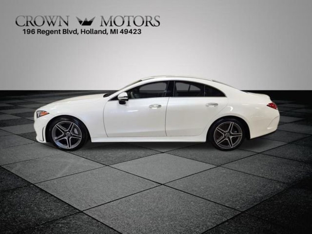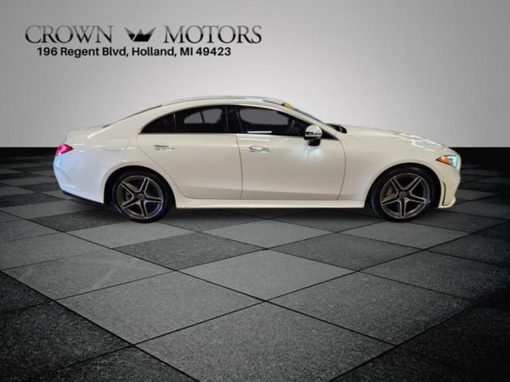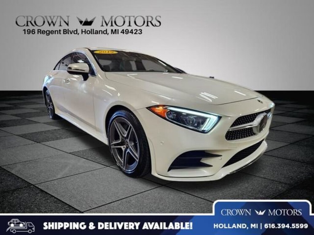 Diamond White 2019 Mercedes-Benz CLS CLS 450 4MATIC® 4MATIC® 9-Speed Automatic I6 ** LOW MILES**, **LOCAL TRADE IN**, 4MATIC®, 13 Speakers, 4-Wheel Disc Brakes, ABS brakes, Air Conditioning, Alloy wheels, AM/FM radio: SiriusXM, Apple CarPlay®/Android Auto®, Auto tilt-away steering wheel, Auto-dimming door mirrors, Auto-dimming Rear-View mirror, Automatic temperature control, Brake assist, Bumpers: body-color, Child-Seat-Sensing Airbag, Compass, Delay-off headlights, Driver door bin, Driver vanity mirror, Dual front impact airbags, Dual front side impact airbags, Electronic Stability Control, Emergency communication system: eCall Emergency System, Exterior Parking Camera Rear, Four wheel independent suspension, Front anti-roll bar, Front Bucket Seats, Front Center Armrest, Front dual zone A/C, Front reading lights, Fully automatic headlights, Garage door transmitter: Homelink, Genuine wood dashboard insert, Genuine wood door panel insert, Headlight cleaning, Heated door mirrors, Heated front seats, Heated Power Front Bucket Seats, Illuminated entry, Knee airbag, Leather Upholstery, Low tire pressure warning, Memory seat, Navigation system: COMAND®, Occupant sensing airbag, Outside temperature display, Overhead airbag, Overhead console, Panic alarm, Passenger door bin, Passenger vanity mirror, Power door mirrors, Power driver seat, Power moonroof, Power passenger seat, Power steering, Power windows, Premium audio system: COMAND®, Radio data system, Radio: COMAND® Navigation System, Rain sensing wipers, Rear anti-roll bar, Rear reading lights, Rear seat center armrest, Rear window defroster, Remote keyless entry, Security system, Speed control, Speed-sensing steering, Split folding rear seat, Steering wheel memory, Steering wheel mounted audio controls, Tachometer, Telescoping steering wheel, Tilt steering wheel, Traction control, Trip computer, Turn signal indicator mirrors, Variably intermittent wipers, Wheels: 19" Twin Multi-Spoke, 4MATIC®.
