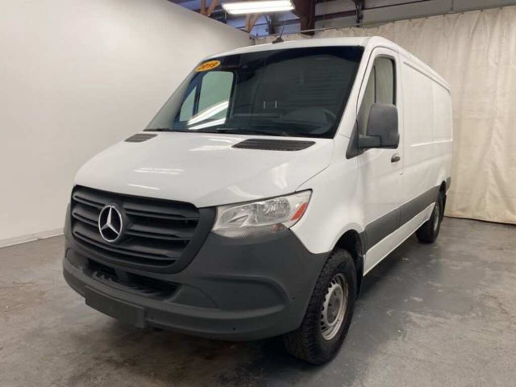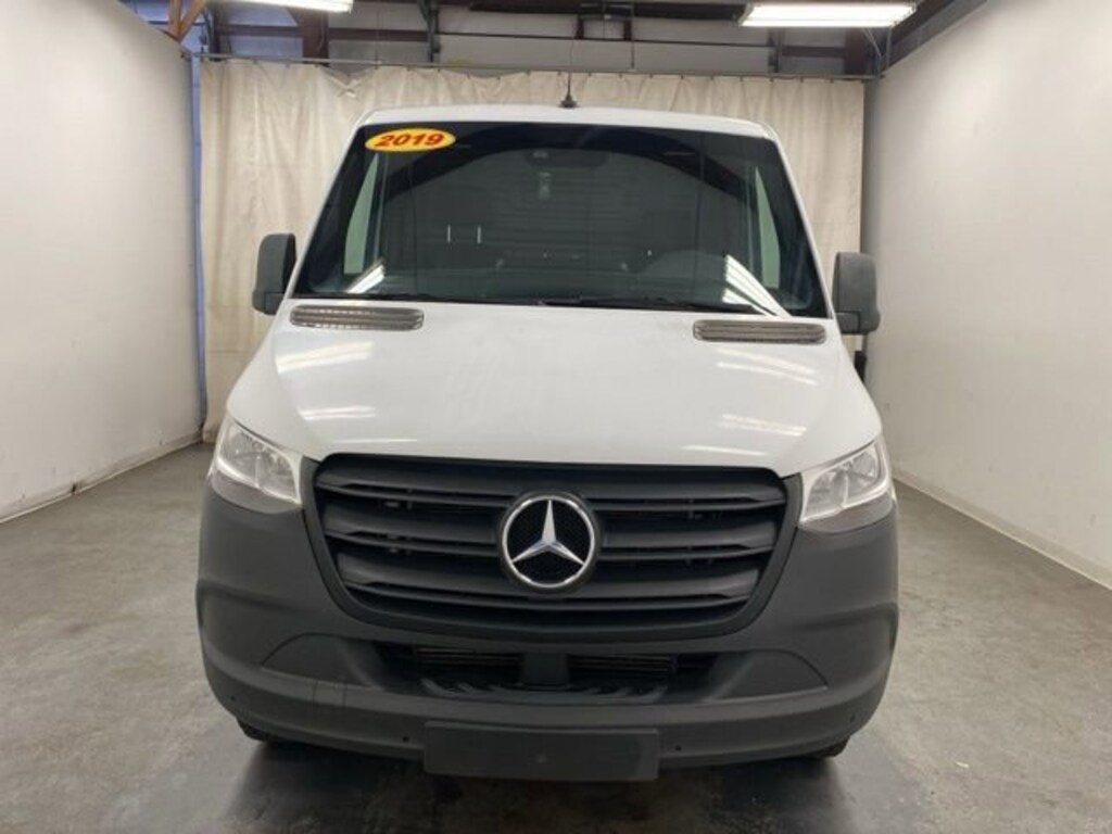 Arctic White 2019 Mercedes-Benz Sprinter 1500 Cargo Van 144 in. WB RWD 9-Speed Automatic 2.0L I4 Turbocharged **LOCAL TRADE IN**, 4-Wheel Disc Brakes, 5 Speakers, 6.5J x 16" Steel Wheels, ABS brakes, Air Conditioning, AM/FM radio, Axle Ratio: 4.182, Bodyside moldings, Brake assist, Driver door bin, Driver's Seat, Driver's Seat Mounted Armrest, Dual front impact airbags, Dual front side impact airbags, Electronic Stability Control, Emergency communication system, Exterior Parking Camera Rear, Front anti-roll bar, Front Bucket Seats, Front wheel independent suspension, Fully automatic headlights, Illuminated entry, Low tire pressure warning, Maturin Fabric Upholstery, Occupant sensing airbag, Outside temperature display, Overhead airbag, Overhead console, Passenger door bin, Passenger Seat, Passenger seat mounted armrest, Power steering, Power windows, Radio: Standard Audio System, Rear anti-roll bar, Remote keyless entry, Seat Occupancy Sensor, Driver's Seat, Speed-sensing steering, Tachometer, Tilt steering wheel, Traction control.