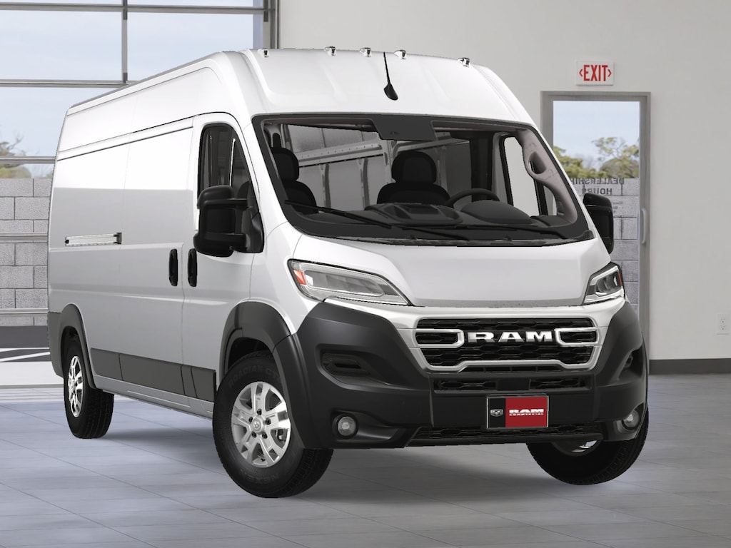 Bright White Clearcoat 2024 Ram ProMaster 3500 High Roof FWD 9-Speed 948TE Automatic 3.6L V6 24V VVT 100 Amp Battery, 115V Auxiliary Power Outlet, 220 Amp Alternator, 4 Speakers, 4-Way Manual Adjust Front Passenger Seat, 4-Wheel Disc Brakes, 4.08 Axle Ratio, ABS brakes, Adaptive Cruise Control w/Stop & Go, Air Conditioning, AM/FM radio: SiriusXM, Ambient LED Interior Lighting, Apple CarPlay/Android Auto, Auto High Beam Headlamp Control, Automatic Headlamps, Black/Gray Seats, Bodyside moldings, Brake assist, Cargo Net, Chrome Front Grille, Class IV Receiver Hitch, Cloth Bucket Seats, Cluster 7.0" TFT Color Display, Cowl Aesthetic Cover, Driver door bin, Driver Seat Armrest, Driver's Seat Mounted Armrest, Electronic Stability Control, Exterior Mirrors w/Heating Element, Exterior Mirrors w/Supplemental Signals, Front anti-roll bar, Front Bucket Seats, Front LED Fog Lamps, Front License Plate Bracket, Front reading lights, Front wheel independent suspension, Heavy Duty Suspension, Illuminated entry, Instrument Panel Bright Bezels, LED Daytime Running Headlamps, LED Reflector Headlamps, Low tire pressure warning, Manufacturer's Statement of Origin, Outside temperature display, Overhead airbag, Overhead console, ParkSense Rear Park Assist System, ParkView Rear Back-Up Camera, Passenger Bucket Seat, Passenger door bin, Power Adjust Mirrors, Power Folding/Heated Mirrors, Power steering, Power windows, Power-Adjustable Convex Aux Mirrors, Quick Order Package 22G SLT, Radio: Uconnect 5 w/7" Display, Rain Sensitive Windshield Wipers, Rear anti-roll bar, Rear Cargo LED Lamp, Rear Heater - A/C Prep Package, Remote keyless entry, Remote Start System, Security Alarm, Shelf Above Roof Trim, Steering wheel mounted audio controls, Storage Group, Tachometer, Telescoping steering wheel, Traction control, Trip computer, Turn signal indicator mirrors, Underseat Storage Tray, Variably intermittent wipers, Wheel Center Cap, Wheels: 16" x 6.0" Aluminum Painted Silver (Fleet), Wheels: 16" x 6.0" Steel.
