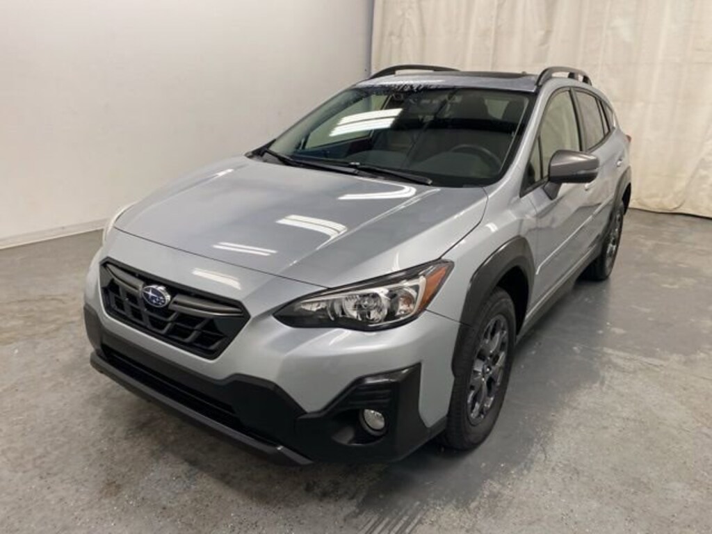 CARFAX One-Owner. Ice Silver Metallic 2022 Subaru Crosstrek Sport AWD Lineartronic CVT 2.5L 4-Cylinder DOHC 16V 3.70 Axle Ratio, 4-Wheel Disc Brakes, 6 Speakers, ABS brakes, Air Conditioning, Alloy wheels, AM/FM radio: SiriusXM, Anti-whiplash front head restraints, Automatic temperature control, Blind Spot Detection (BSD), Brake assist, Bumpers: body-color, CD player, Driver door bin, Driver vanity mirror, Dual front impact airbags, Dual front side impact airbags, Electronic Stability Control, Emergency communication system: STARLINK Safety and Security (Subscription Required), Exterior Parking Camera Rear, Four wheel independent suspension, Front anti-roll bar, Front Bucket Seats, Front Center Armrest, Front fog lights, Front reading lights, Fully automatic headlights, Heated door mirrors, Heated Front Bucket Seats, Heated front seats, Illuminated entry, Knee airbag, Leather Shift Knob, Low tire pressure warning, Moonroof Package, Occupant sensing airbag, Outside temperature display, Overhead airbag, Overhead console, Panic alarm, Passenger door bin, Passenger vanity mirror, Power door mirrors, Power Moonroof, Power steering, Power windows, Radio data system, Radio: Subaru STARLINK 6.5" Multimedia Plus System, Radio: Subaru STARLINK 8.0" Multimedia Plus System, Rear anti-roll bar, Rear window defroster, Rear window wiper, Remote keyless entry, Security system, Speed control, Speed-sensing steering, Split folding rear seat, Spoiler, STARLINK/Apple CarPlay/Android Auto, StarTex Upholstery, Steering wheel mounted audio controls, Subaru STARLINK Smartphone Integration, Tachometer, Telescoping steering wheel, Tilt steering wheel, Traction control, Trip computer, Turn signal indicator mirrors, Variably intermittent wipers, Wheels: 17" x 7.0J Alloy Dark Gray Finish.