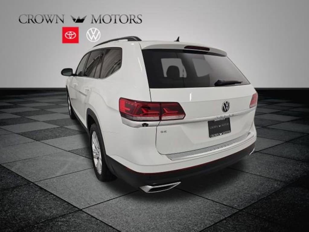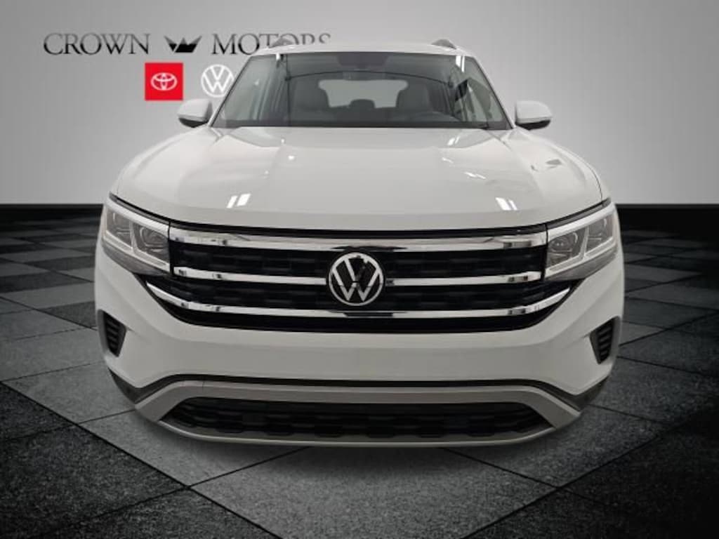 3.60 Axle Ratio, 3rd row seats: split-bench, 4-Wheel Disc Brakes, 6 Speakers, ABS brakes, Air Conditioning, Alloy wheels, AM/FM radio: SiriusXM with 360L, Auto-Dimming Rear-View Mirror, Auto-dimming Rear-View mirror, Automatic temperature control, Brake assist, Bumpers: body-color, Carpeted Mats - Bench Seats, Carpeted Mats Kit - Bench Seat, Compass, Delay-off headlights, Driver door bin, Driver vanity mirror, Dual front impact airbags, Dual front side impact airbags, Electronic Stability Control, Emergency communication system: VW Car-Net Safe & Secure 5-year, Exterior Parking Camera Rear, Four wheel independent suspension, Front anti-roll bar, Front Bucket Seats, Front Center Armrest, Front dual zone A/C, Front fog lights, Front reading lights, Fully automatic headlights, Heated Comfort Front Bucket Seats, Heated door mirrors, Heated front seats, Heavy Duty Trunk Liner w/VW CarGo Blocks, Illuminated entry, Leather Shift Knob, Low tire pressure warning, Occupant sensing airbag, Outside temperature display, Overhead airbag, Overhead console, Panic alarm, Passenger door bin, Passenger vanity mirror, Perforated V-Tex Leatherette Seating Surfaces, Power door mirrors, Power driver seat, Power Liftgate, Power steering, Power windows, Radio data system, Radio: MIB3 Composition Media w/8" Touchscreen, Rain sensing wipers, Rear air conditioning, Rear anti-roll bar, Rear reading lights, Rear seat center armrest, Rear window defroster, Rear window wiper, Remote keyless entry, Security system, Speed control, Speed-sensing steering, Split folding rear seat, Spoiler, Standard Suspension, Steering wheel mounted audio controls, Tachometer, Telescoping steering wheel, Tilt steering wheel, Traction control, Trip computer, Turn signal indicator mirrors, Variably intermittent wipers, Volkswagen Logo Puddle Lights, Wheels: 20" x 8J 5-Spoke Silver Painted Alloy.