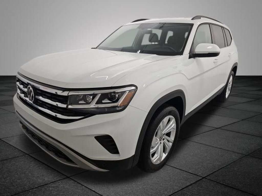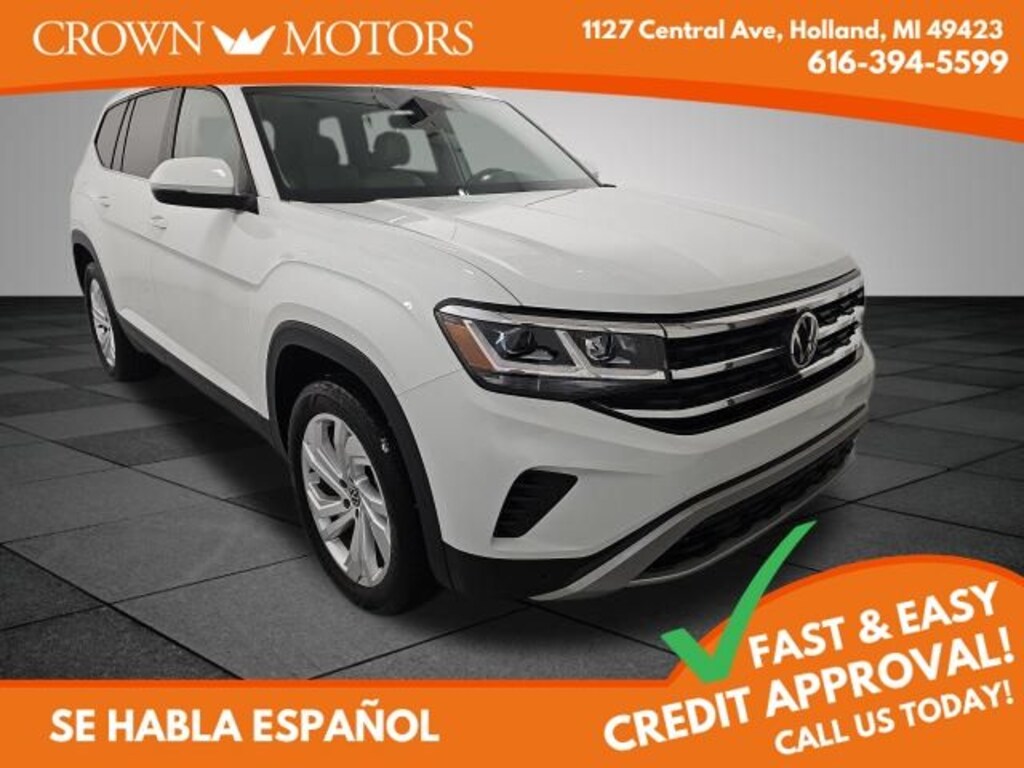 Clean CARFAX. Pure White 2023 Volkswagen Atlas 2.0T SE w/Technology FWD 8-Speed Automatic with Tiptronic 2.0L TSI **REMOTE START**, **HEATED SEATS**, **LOCAL TRADE**, **BLIND SPOT MONITOR**, **Dual Zone Automatic Climate Control**, **LEATHER SEATS**, **POWER REAR HATCH**, **Power Driver Seat**, **REAR VIEW CAMERA**, **Remaining Factory Warranty**, **APPLE CAR PLAY/ANDROID AUTO CAPABLE**, **FREE CARFAX AT CROWNMOTORS.COM**.