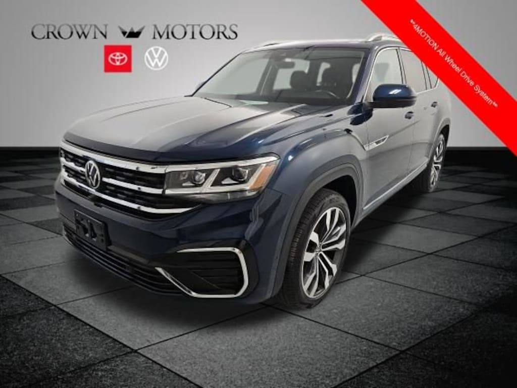 The exterior of this Atlas is dressed in a sleek and sophisticated Blue color, complemented by the bold R-Line styling cues that give it a commanding presence on the road. Step inside, and you'll be greeted by a spacious and well-appointed cabin, featuring premium leather seating surfaces, heated front and rear seats, and a panoramic moonroof that floods the interior with natural light.